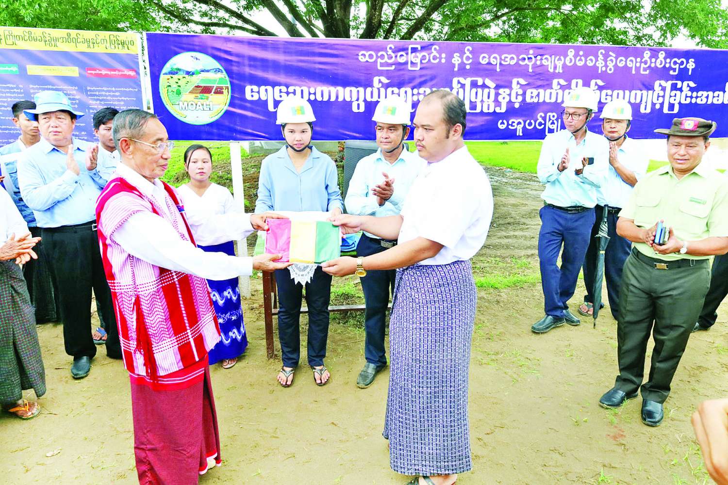 ဆက်လက်၍ နိုင်ငံတော်စီမံအုပ်ချုပ်ရေးကောင်စီအဖွဲ့ဝင်နှင့်အဖွဲ့သည် မအူပင်မြို့ တိုးရွှေဝါခန်းမ၌ မအူပင်ခရိုင်အတွင်းရှိ မအူပင်၊ ညောင်တုန်း၊ ဓနုဖြူမြို့နယ်တို့မှ တောင်သူများနှင့် တာဝန်ရှိသူများကို တွေ့ဆုံ၍ ဒေသဖွံ့ဖြိုးရေးကိစ္စရပ်များကို ဆွေးနွေးပြီး နိုင်ငံ့စီးပွားမြှင့်တင်ရေးရန်ပုံငွေဖြင့် မိုးစပါးစိုက်ပျိုး ဆောင်ရွက်နေသော တောင်သူများကို သွင်းအားစုနှင့် မျိုးစေ့များ ပေးအပ်သည်။