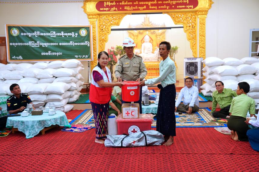 မကွေးတိုင်းဒေသကြီး၊ မင်းဘူးခရိုင်၊ မင်းဘူး(စကု)မြို့နယ်၌ ဧရာဝတီမြစ်ရေဝင်ရောက်မှုများကြောင့် ယာယီကယ်ဆယ်ရေးစခန်းများသို့ ပြောင်းရွှေ့နေထိုင်ကြသည့် ရေဘေးသင့်အိမ်ထောင်စုများအတွက် အခြေခံစာသောက်ကုန်များ၊ ထောက်ပံ့ငွေများနှင့် ကယ်ဆယ်ရေးပစ္စည်းများကို မကွေးတိုင်းဒေသကြီးဝန်ကြီးချုပ် ဦးတင့်လွင်နှင့်အတူ တိုင်းဒေသကြီးအစိုးရအဖွဲ့ဝင် ဝန်ကြီးများ၊ တိုင်းဒေသကြီး၊ ခရိုင်၊ မြို့နယ်အဆင့် ဌာနဆိုင်ရာတာဝန်ရှိသူများက ယမန်နေ့ ညနေ ၄ နာရီအချိန်က မင်းဘူးမြို့ အမှတ်(၄)ရပ်ကွက် မှန်ကင်းကျောင်းတိုက်ရှိ စိန်ချည်လင်းဓမ္မဗိမာန်၌ သွားရောက်ထောက်ပံ့ပေးအပ်ခဲ့ကြောင်း သိရသည်။