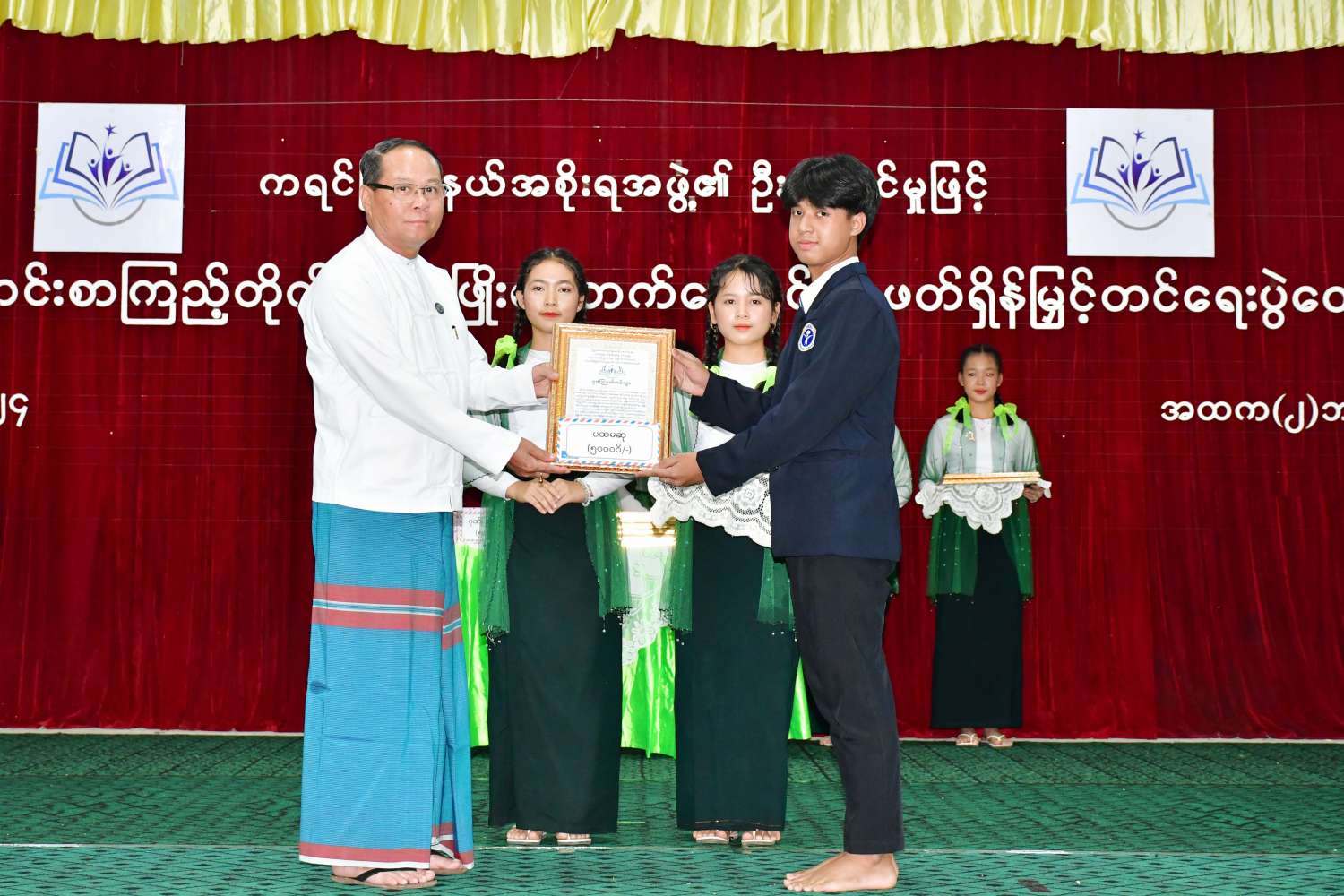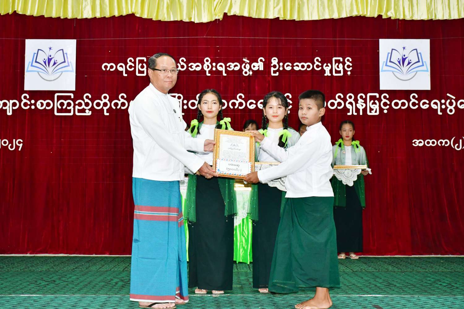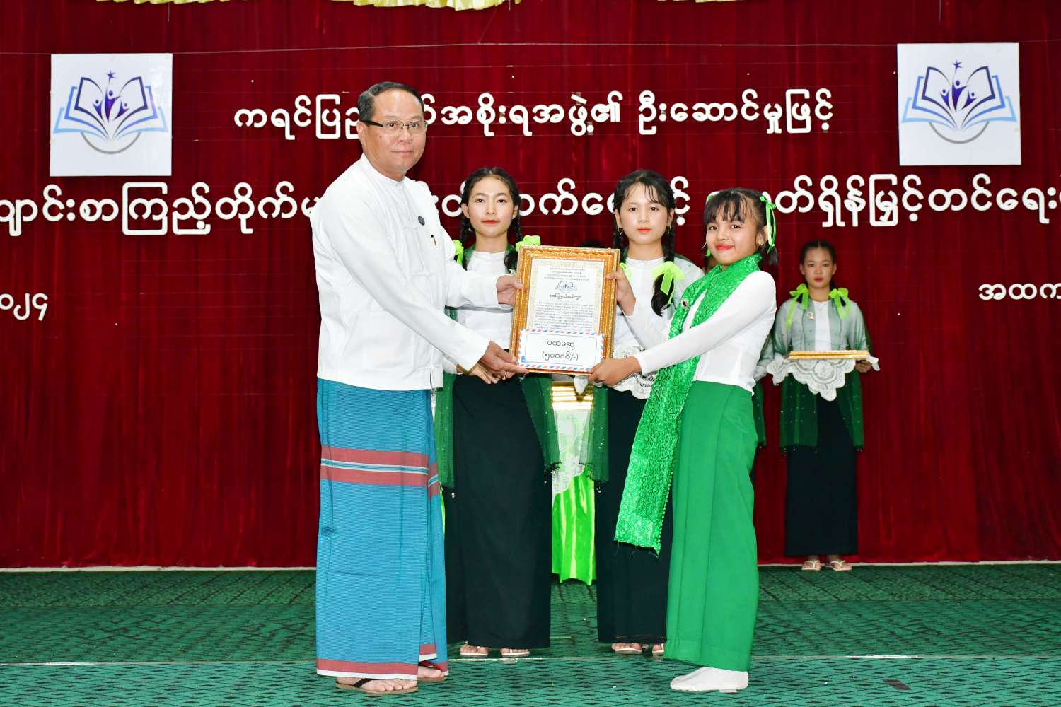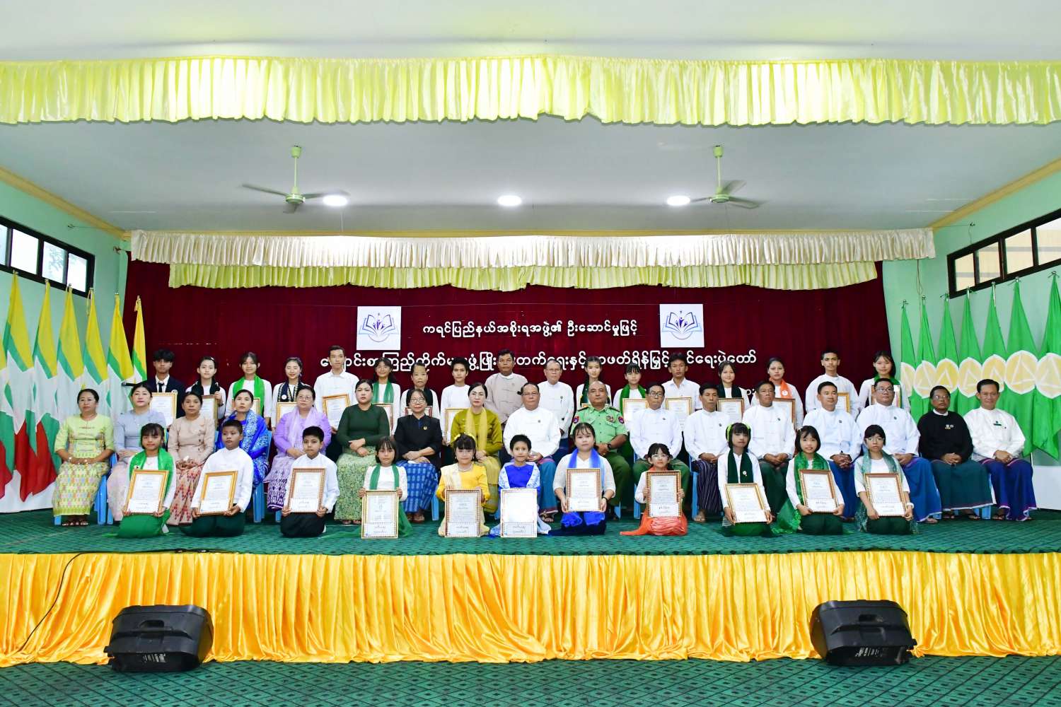 ကရင်ပြည်နယ် ကျောင်းစာကြည့်တိုက်များဖွံ့ဖြိုးတိုးတက်ရေးနှင့် စာဖတ်ရှိန်မြှင့်တင်ရေးပွဲတော်တွင် ဆုရရှိကြသည့် ကျောင်းသားကျောင်းသူများအားဂုဏ်ပြုဆုချီးမြှင့်သည့်အခမ်းအနားကို ယမန်နေ့ မွန်းလွဲ ၃ နာရီက ဘားအံမြို့၊ အမှတ်(၂)အခြေခံပညာအထက် တန်းကျောင်း ရွှေရတုခန်းမ၌ ကျင်းပခဲ့သည်။