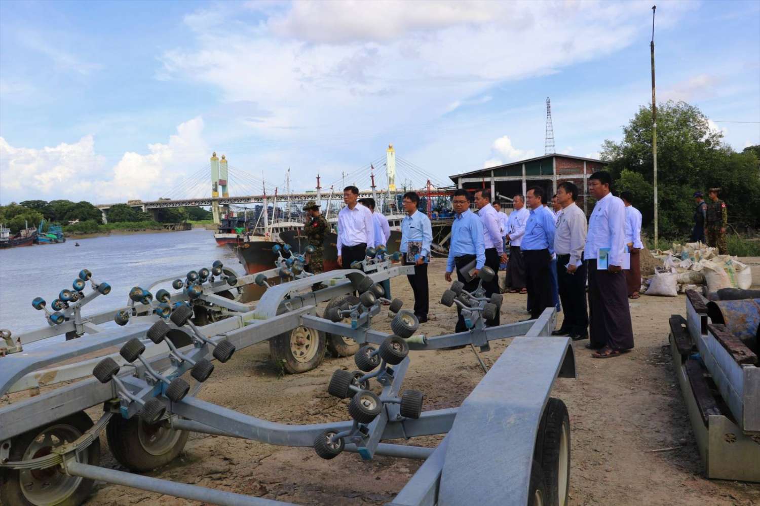 ထိုမှတစ်ဆင့် ပြည်ထောင်စုဝန်ကြီးနှင့်အဖွဲ့သည် ဗိုလ်တထောင်မြို့နယ်ရှိ ရေကြောင်းပို့ဆောင်ရေးညွှန်ကြားမှုဦးစီးဌာနရုံးသို့ရောက်ရှိကာ တာဝန်ရှိသူများက Integreted Vessel Monitoring and Tracking System ဆိုင်ရာတင်ပြမှုအပေါ် အခြားဆက်စပ်ဌာနများနှင့် ပေါင်းစပ်ညှိနှိုင်း၍ အကျိုးရှိစွာအသုံးချရေးမှာကြားပြီး ဝန်ထမ်းများအား ခင်မင်ရင်းနှီးစွာနှုတ်ဆက်သည်။ ဆက်လက်၍ ပြည်ထောင်စုဝန်ကြီးနှင့်အဖွဲ့သည် ပုဇွန်တောင်မြို့နယ်ရှိ ရေအရင်းအမြစ်နှင့်မြစ်ချောင်းများ ဖွံ့ဖြိုးတိုးတက်ရေးဦးစီးဌာနရုံးသို့ရောက်ရှိပြီး ရုံးအဆောက်အဦနှင့်ရုံးခန်းများကို ကြည့်ရှုစစ်ဆေးခြင်း၊ ပုဇွန်တောင်ချောင်းကမ်းပါးတွင် ဌာနပိုင်ရေကြောင်းပြရေယာဉ်များနှင့် သောင်တူးသင်္ဘောများ လွန်းတင်ပြင်ဆင်နိုင်ရေး တိုးချဲ့တည်ဆောက်နေသည့် ဘိုးပိုင်အခြေပြု သံကူကွန်ကရစ်လွန်းကျင်း လုပ်ငန်းခွင်အား ကြည့်ရှုစစ်ဆေးခဲ့ကြောင်း သတင်းရရှိသည်။