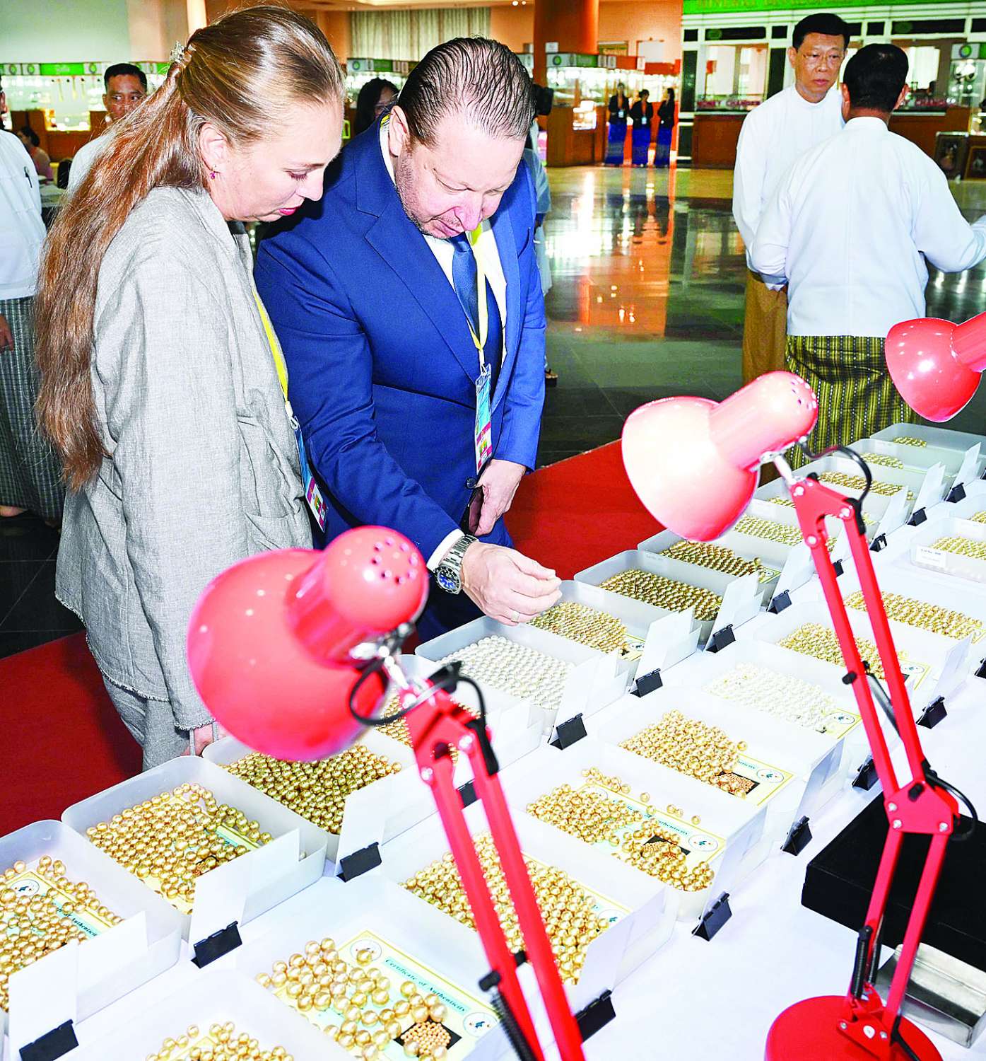 အဆိုပါ ပုလဲရောင်းချပွဲတွင် ပြည်တွင်းပြည်ပမှ ရတနာကုန်သည်များသည် နံနက်ပိုင်းမှစတင်၍ မဏိရတနာ ကျောက်စိမ်းခန်းမအတွင်း၌ ရောင်းချရန် ခင်းကျင်းပြသထားသည့် ပုလဲအတွဲများကို စိတ်ကြိုက်လေ့လာကြည့်ရှုကြသည်။