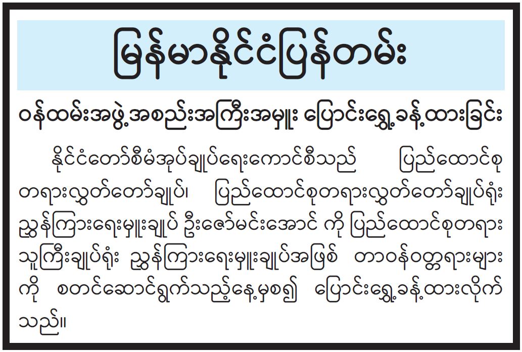 ဝန်ထမ်းအဖွဲ့အစည်းအကြီးအမှူး ပြောင်းရွှေ့ခန့်ထားခြင်း