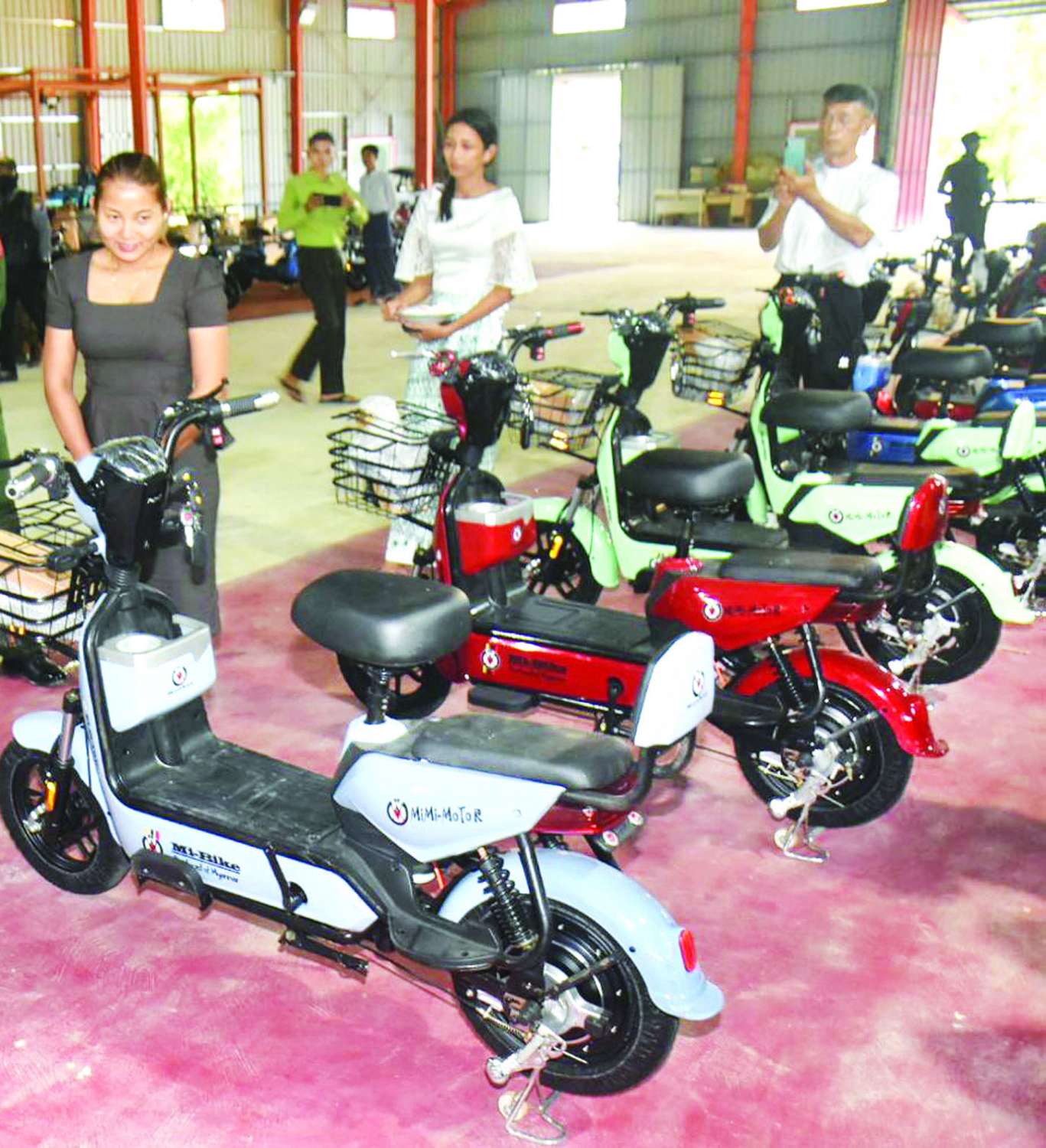 မအူပင်ခရိုင် ညောင်တုန်းမြို့နယ် ဇီးဖြူကျွန်းကျေးရွာရှိ MiMi Motors ကုမ္ပဏီ၌ လျှပ်စစ်စက်ဘီး (E-Bike)နှင့် သုံးဘီးဆိုင်ကယ်များကို ဘက်ထရီကြိုးနှင့် မိန်းကြိုးတပ်ဆင်နေမှု၊ ကာဗာတပ်ဆင်နေမှု၊ လက်ကိုင်ကိုင်းတပ်ဆင်နေမှု၊ ပစ္စည်းတစ်ခုချင်းအလိုက် တပ်ဆင်နေမှုနှင့် ကုမ္ပဏီမှတာဝန်ရှိသူများနှင့် ဝန်ထမ်းများက လျှပ်စစ်စက်ဘီး (E-Bike)နှင့် သုံးဘီးဆိုင်ကယ်အား လက်တွေ့စီးနင်းမောင်းနှင်ပြသမှုများကို ဧရာဝတီတိုင်းဒေသကြီးဝန်ကြီးချုပ် ဦးတင်မောင်ဝင်းနှင့် အဖွဲ့သည် ယမန်နေ့ ညနေပိုင်းက သွားရောက်ကြည့်ရှုစစ်ဆေးသည်။