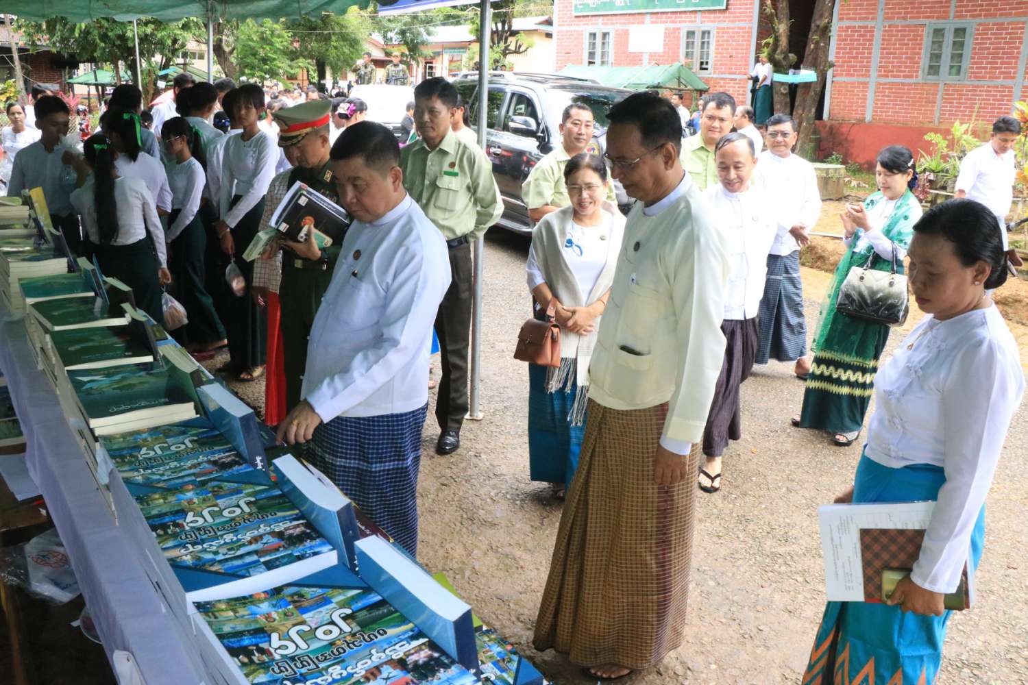 ဆက်လက်၍ ပြည်နယ်ဝန်ကြီးချုပ်နှင့် တာဝန်ရှိသူများက ပြန်ကြားရေးနှင့်ပြည်သူ့ဆက်ဆံရေးဦးစီးဌာနနှင့် စာအုပ်အရောင်ဆိုင်းများမှ ရောင်းချသော စာအုပ်၊ စာစောင်များအား စိတ်ပါဝင်စားစွာ လေ့လာဖတ်ရှုနေသော ကျောင်းသား၊ ကျောင်းသူများအား ကြည့်ရှုအားပေးခဲ့ကြောင်း သိရသည်။