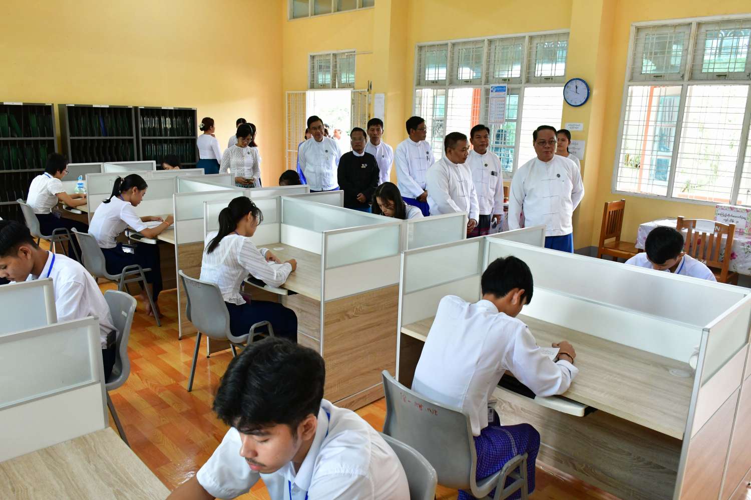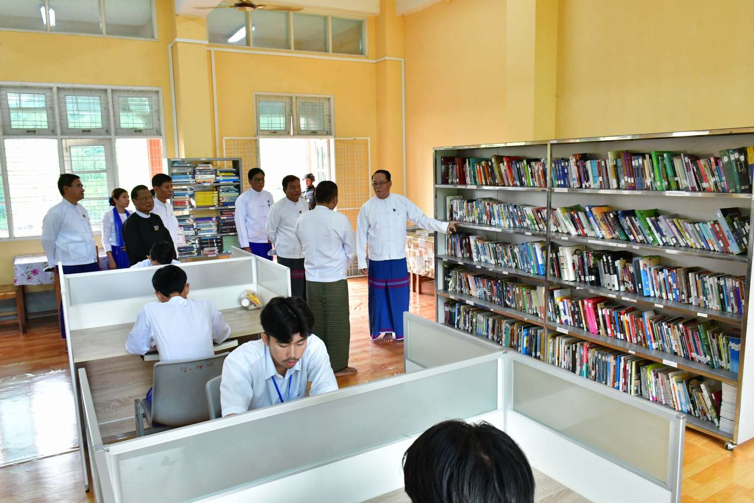 ထို့နောက် ပြည်နယ်ဝန်ကြီးချုပ်နှင့်အဖွဲ့သည် နည်းပညာတက္ကသိုလ်(ဘားအံ)၏ ကျောင်းစာကြည့်တိုက်သို့သွားရောက်ပြီး စာအုပ်၊ စာစောင်များနှင့် စာဖတ်၊ စာငှားနေမှုအခြေအနေများ၊ ကျောင်းသား၊ ကျောင်းသူများ စာကြည့်တိုက်ကိုအသုံးပြုနေမှုအခြေအနေများ၊ ကွန်ပျူတာခန်းနှင့် စာအုပ်စာစောင်များ ခင်းကျင်းထားရှိမှုအခြေအနေများကို လှည့်လည်ကြည့်ရှုအားပေးကာ ကျောင်းစာကြည့်တိုက်အတွက် ငွေကျပ် သိန်း ၂၀ ကို ထောက်ပံ့ပေးအပ်ခဲ့ကြောင်း သတင်းရရှိသည်။