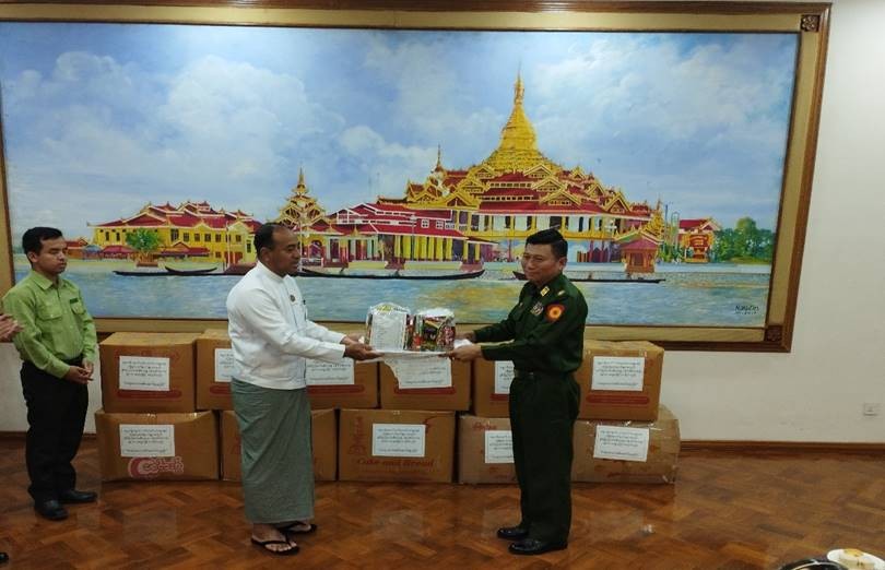 အလားတူ နိုင်ငံတော်ကာကွယ်ရေးနှင့် လုံခြုံရေးတာဝန်များကို စွမ်းစွမ်းတမံထမ်းဆောင်လျက်ရှိသော လုံခြုံရေးတပ်ဖွဲ့ဝင်များအတွက် စားသောက်ဖွယ်ရာများ ဂုဏ်ပြုပေးအပ်ခြင်းကို ယနေ့မွန်းလွဲပိုင်းတွင် ရှမ်းပြည်နယ်အစိုးရအဖွဲ့ရုံး၊ ဧည့်ခန်းမ၌ ပြုလုပ်ရာ ရှမ်းပြည်နယ်ဝန်ကြီးချုပ် ဦးအောင်အောင်၊ အရှေ့ပိုင်းတိုင်းစစ်ဌာနချုပ် ဒုတိယတိုင်းမှူး ဗိုလ်မှူးချုပ် အောင်ကျော်ဆန်းနှင့် တာဝန်ရှိသူများ၊ ပြည်နယ်အစိုးရအဖွဲ့မှ တာဝန်ရှိသူများ တက်ရောက်ကြသည်။