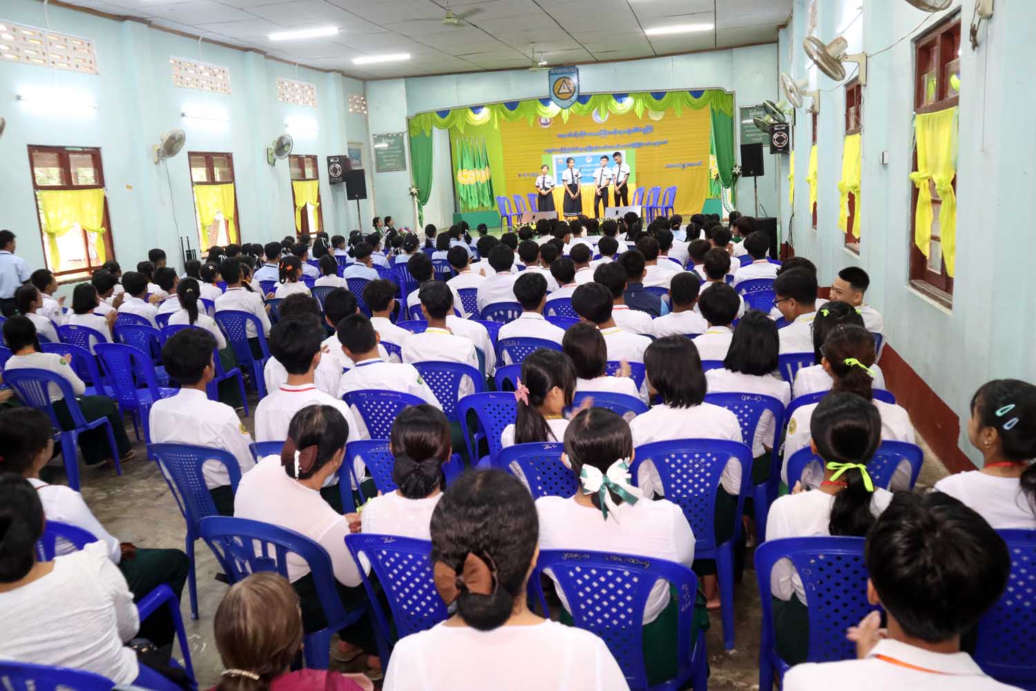 ယနေ့ကျင်းပသည့် ကျောင်းစာကြည့်တိုက်များ ဖွံ့ဖြိုးတိုးတက်ရေးနှင့်စာဖတ်ရှိန်မြှင့်တင်ရေးပွဲတော်သို့ အခြေခံပညာအထက်တန်း ကျောင်းအမှတ်(၄)မှကျောင်းသား၊ ကျောင်းသူများ အမှတ်(၅)နှင့် အမှတ်(၈) ကျောင်းများမှ လာရောက်လေ့လာသူများနှင့် မဟာရွှေဂုဏ်ထူးကိုယ်ပိုင်အထက်တန်းကျောင်းမှ ကျောင်းသား၊ ကျောင်းသူများ စုစုပေါင်း(၁၃၀၀)ဦးခန့် တက်ရောက်ခဲ့ကြပြီး ပွဲတော်တွင် ခင်းကျင်းပြသထားသည့် ဓာတ်ပုံပြဘုတ်များနှင့် စာအုပ်ပြပွဲကို စိတ်ပါဝင်စားစွာ ကြည့်ရှုလေ့လာခဲ့ကြကာ ပြိုင်ပွဲများတွင် ပျော်ပျော်ရွှင်ရွှင်ပါဝင်ဆင်နွှဲကြသည့် ပြိုင်ပွဲဝင်များနှင့် ဆုရရှိသူများကို စက်တင်ဘာ ၅ ရက်နေ့တွင် ဆုများပေးအပ်ချီးမြှင့်မည်ဖြစ်ကြောင်း သိရသည်။