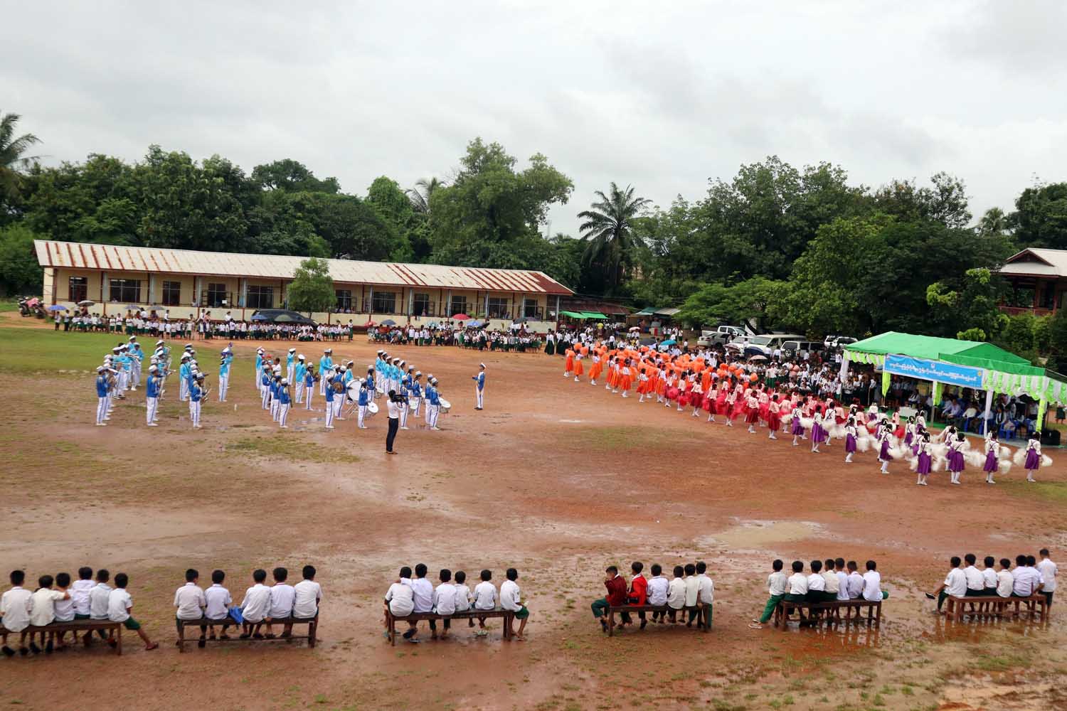 ထို့နောက် ကျောင်းသား၊ကျောင်းသူများက တနင်္သာရီပုလဲဧကရီသီချင်းဖြင့် ကပြဖျော်ဖြေမှု၊ ဘင်ခရာနှင့် ပန်းပွားအကများ၏ သီဆိုကပြဖျော်ဖြေနေမှုကို တိုင်းဒေသကြီးဝန်ကြီးချုပ် ဦးမြတ်ကိုက ကြည့်ရှုအားပေးကာ ဂုဏ်ပြုဆုငွေများချီးမြှင့်ပြီး အမှတ်(၄)အခြေခံပညာအထက်တန်းကျောင်းဝင်းအတွင်း စိုက်ပျိုးရေးနှင့်မွေးမြူရေးသင်တန်းကျောင်းမှ သင်တန်းသား၊ ကျောင်းသူများအား လိုက်လံကြည့်ရှုအားပေးကာ ကျောင်းသုံးဗလာစာအုပ်များ ဂုဏ်ပြုလက်ဆောင်ပေးအပ်၍ အာဟာရဖြည့်ကြက်ဥများ တစ်ဦးချင်း ပေးအပ်သည်။