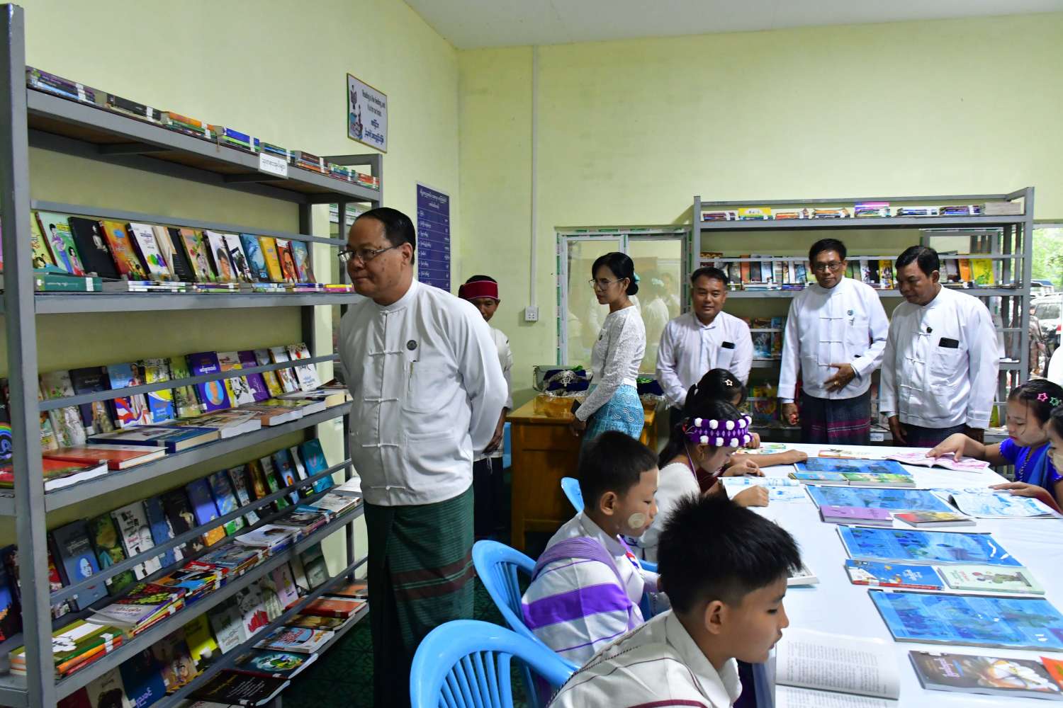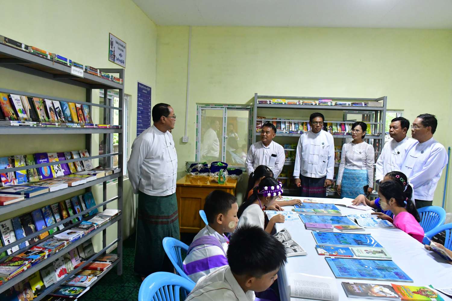 ယင်းနောက် ပြည်နယ်ဝန်ကြီးချုပ်နှင့်အဖွဲ့သည် စာကြည့်တိုက်အဆောက်အဦအား အမွှေးနံ့သာရည်များ ပက်ဖြန်း၍ စာကြည့်တိုက်အတွင်းရှိ စာအုပ်စာစောင်၊ ပရိဘောဂများနှင့် ဒေသခံပြည်သူများ၏ သုတ၊ ရသ စာအုပ်စာစောင်များ လာရောက်လေ့လာဖတ်ရှုနေမှုအခြေအနေများကို လှည့်လည်ကြည့်ရှုအားပေးကြပြီး တာဝန်ရှိသူများအား လိုအပ်သည်များမှာကြားခဲ့ကြောင်း သိရသည်။