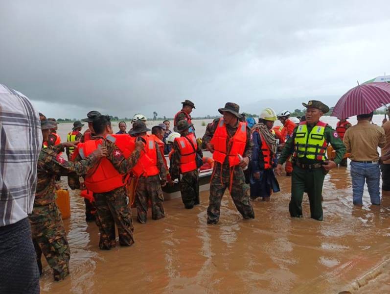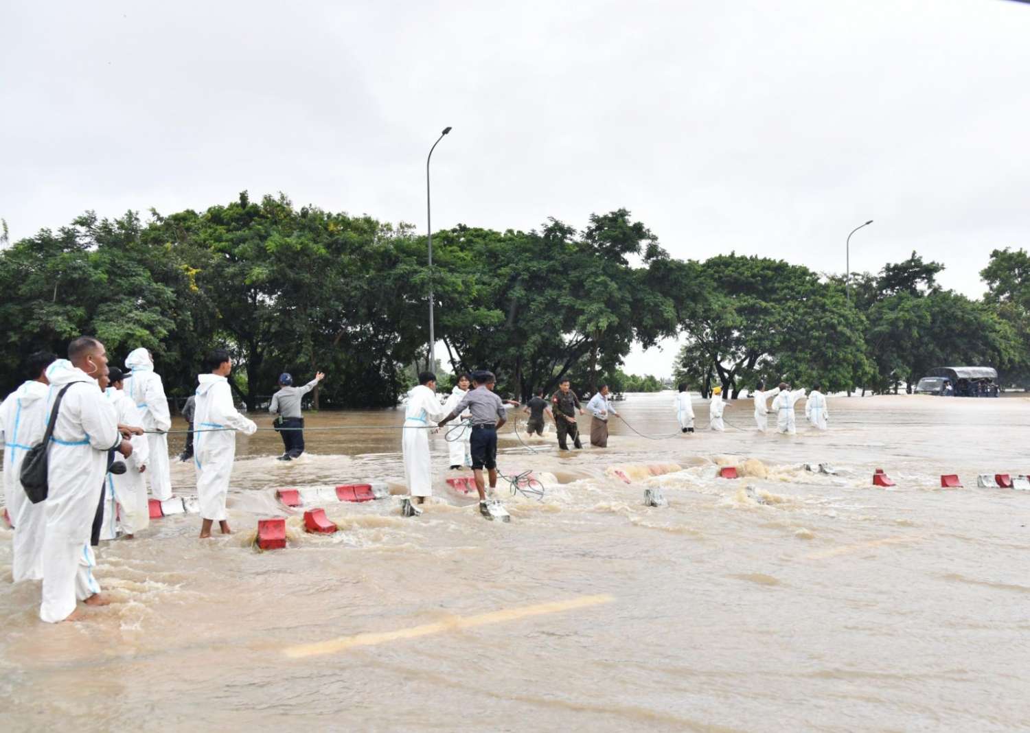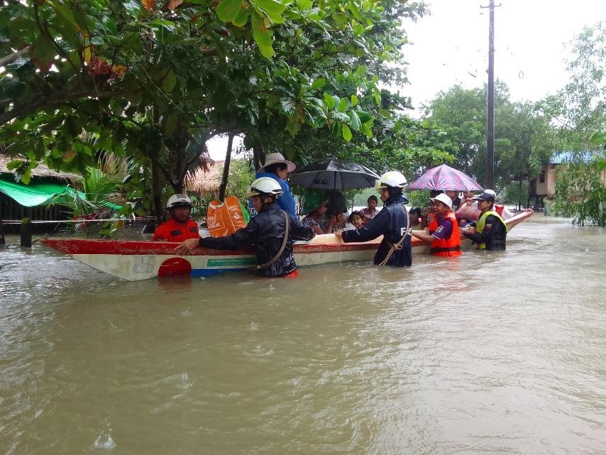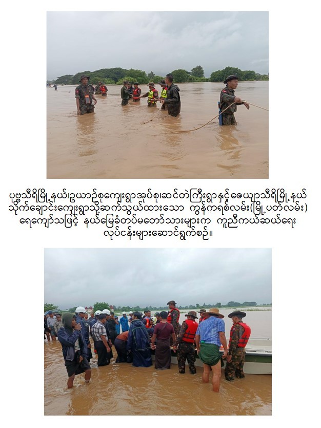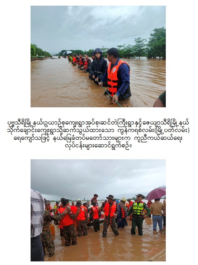 ထိုသို့ ရေကြီးရေလျှံမှုများဖြစ်ပေါ်နေသည့် နေရာများသို့ ဒေသအလိုက် ဌာနဆိုင်ရာတာဝန်ရှိသူများ၊ တပ်မတော်သားများ၊ မြန်မာနိုင်ငံရဲတပ်ဖွဲ့ဝင်များ၊ မီးသတ်တပ်ဖွဲ့ဝင်များ၊ ကြက်ခြေနီတပ်ဖွဲ့ဝင်များနှင့် ပရဟိတအသင်းအဖွဲ့များက ကူညီကယ်ဆယ်ရွှေ့ပြောင်းရေးလုပ်ငန်းများကို အချိန်နှင့်တစ်ပြေးညီ တက်တက်ကြွကြွ ကူညီဆောင်ရွက်ပေးလျက်ရှိသည်။
