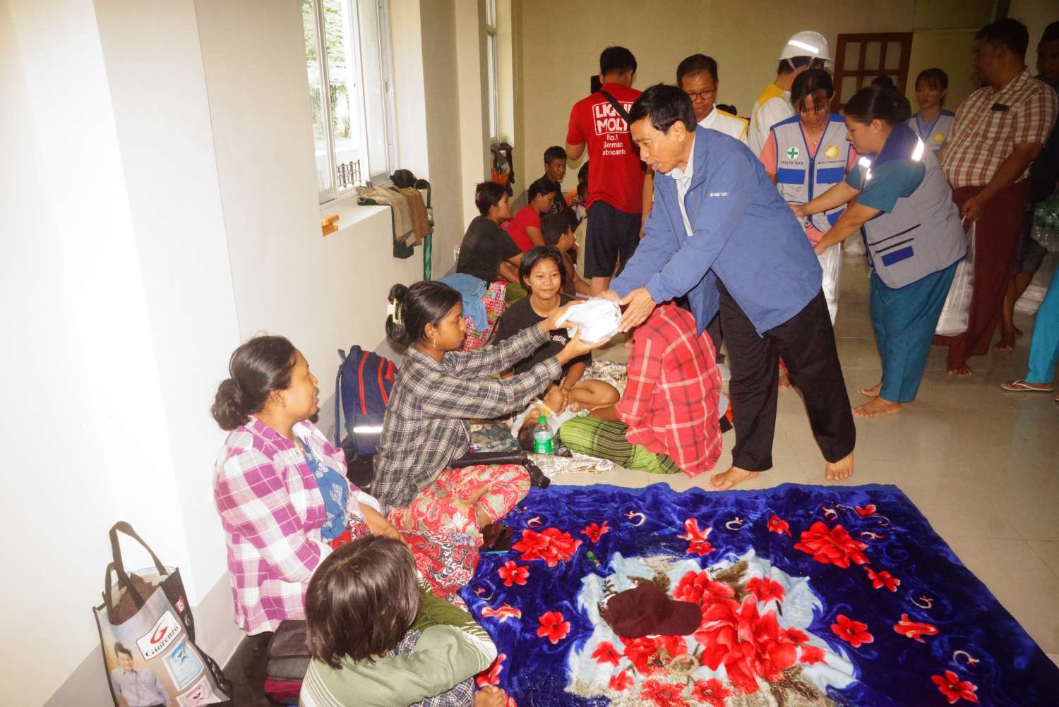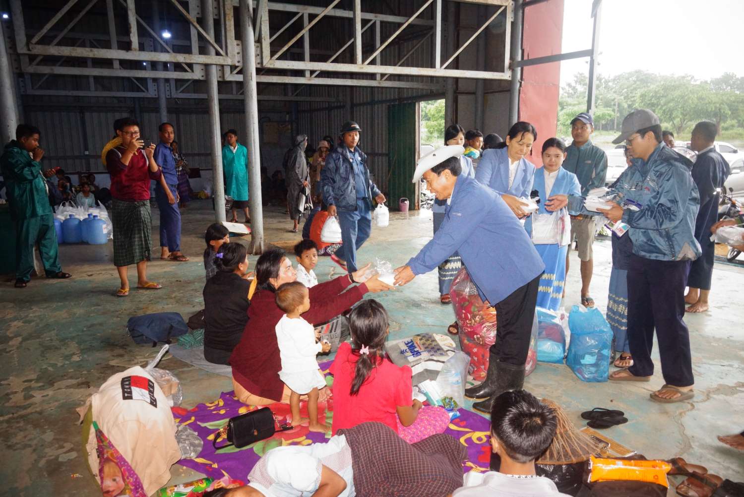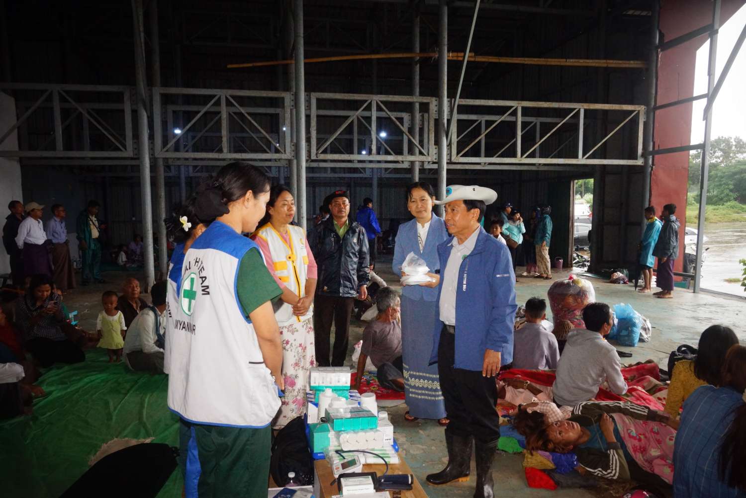 ထို့နောက် နေပြည်တော်ကောင်စီဥက္ကဋ္ဌနှင့်အဖွဲ့သည် ရေဘေးသင့်ပြည်သူများအား ယာယီရွှေ့ပြောင်းနေရာချထားသည့် ဥပ္ပါတသန္တိစေတီတော်မြတ်ကြီး၊ တပေါင်းကွင်းနှင့် မင်္ဂလာဗျူဟာသာသနာ့ဗိမာန်တော်သို့ သွားရောက်၍ ရေဘေးသင့်ပြည်သူများအား မြို့နယ်ပြည်သူ့ကျန်းမာရေးဦးစီးဌာနမှ ကျန်းမာရေးစောင့်ရှောက်ပေးနေမှုများကိုကြည့်ရှုပြီး ရေဘေးသင့်ပြည်သူများအား အားပေးစကားပြောကြားကာ အာဟာရဖြစ် စားသောက်ဖွယ်ရာများ ပေးအပ်ခဲ့ပြီး လိုအပ်သည်များကို တာဝန်ရှိသူများအား မှာကြားခဲ့ကြောင်း သိရသည်။ ဆက်လက်၍ ရာဇဌာနီလမ်းနှင့် ပင်လောင်းလမ်းတို့တွင် ရေဝင်ရောက်နေမှုအခြေအနေများအား လှည့်လည်ကြည့်ရှုခဲ့ကြောင်း သိရသည်။