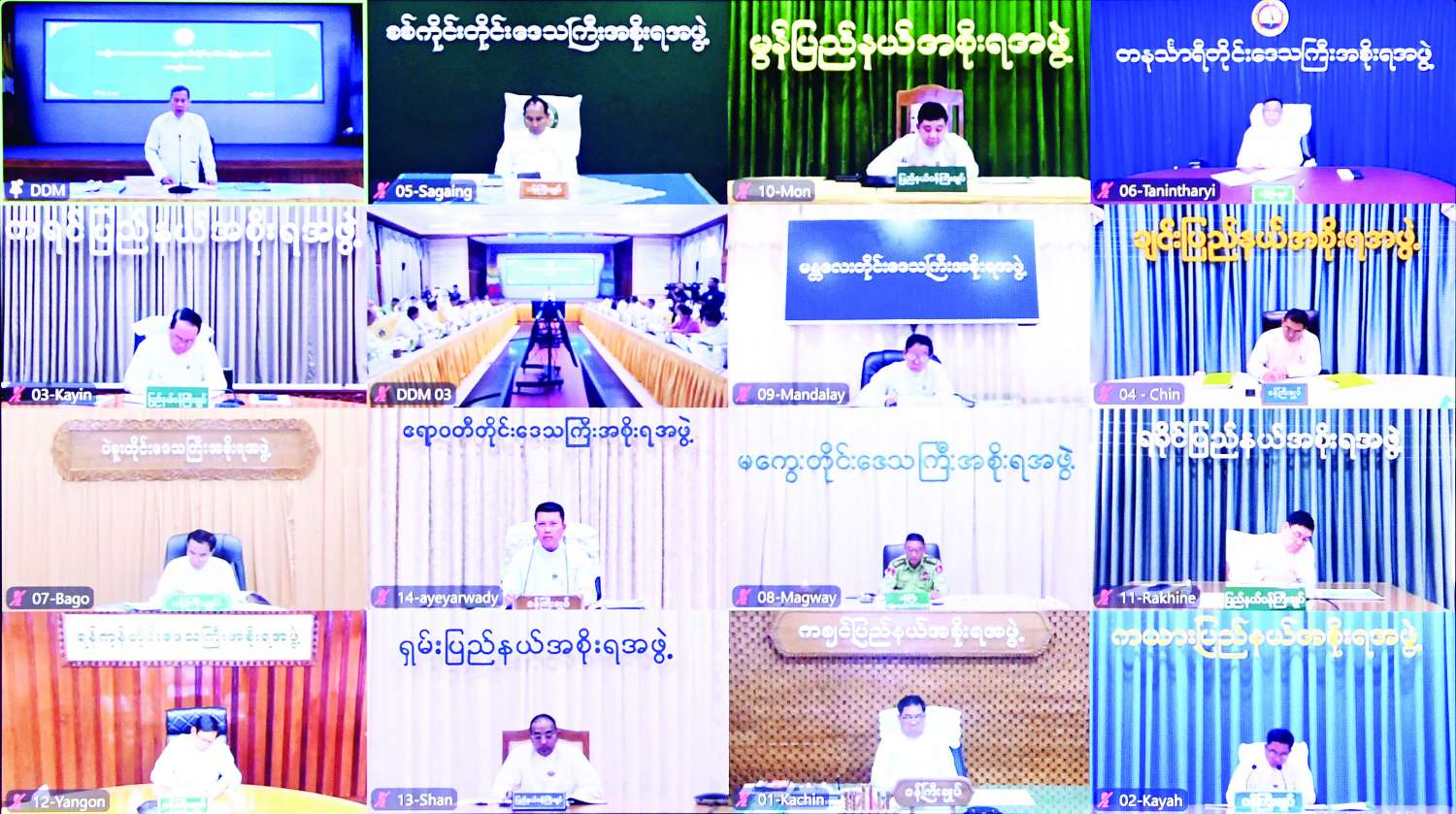 ယနေ့အစည်းအဝေးတွင် သက်ဆိုင်ရာလုပ်ငန်းကော်မတီများနှင့် တိုင်းဒေသကြီး/ပြည်နယ်အစိုးရအဖွဲ့များအနေဖြင့် ရေကြီးရေလျှံမှုဖြစ်စဉ်ကြောင့် ပျက်စီးဆုံးရှုံးမှုများအပေါ် လတ်တလောဆောင်ရွက်ရမည့် လုပ်ငန်းစဉ်များ၊ ရှေ့ဆက်လက် ဆောင်ရွက်သွားရမည့် လုပ်ငန်းစဉ်များနှင့်စပ်လျဉ်း၍ ထိထိမိမိဆွေးနွေးကြရန်လိုကြောင်း ပြောကြားသည်။