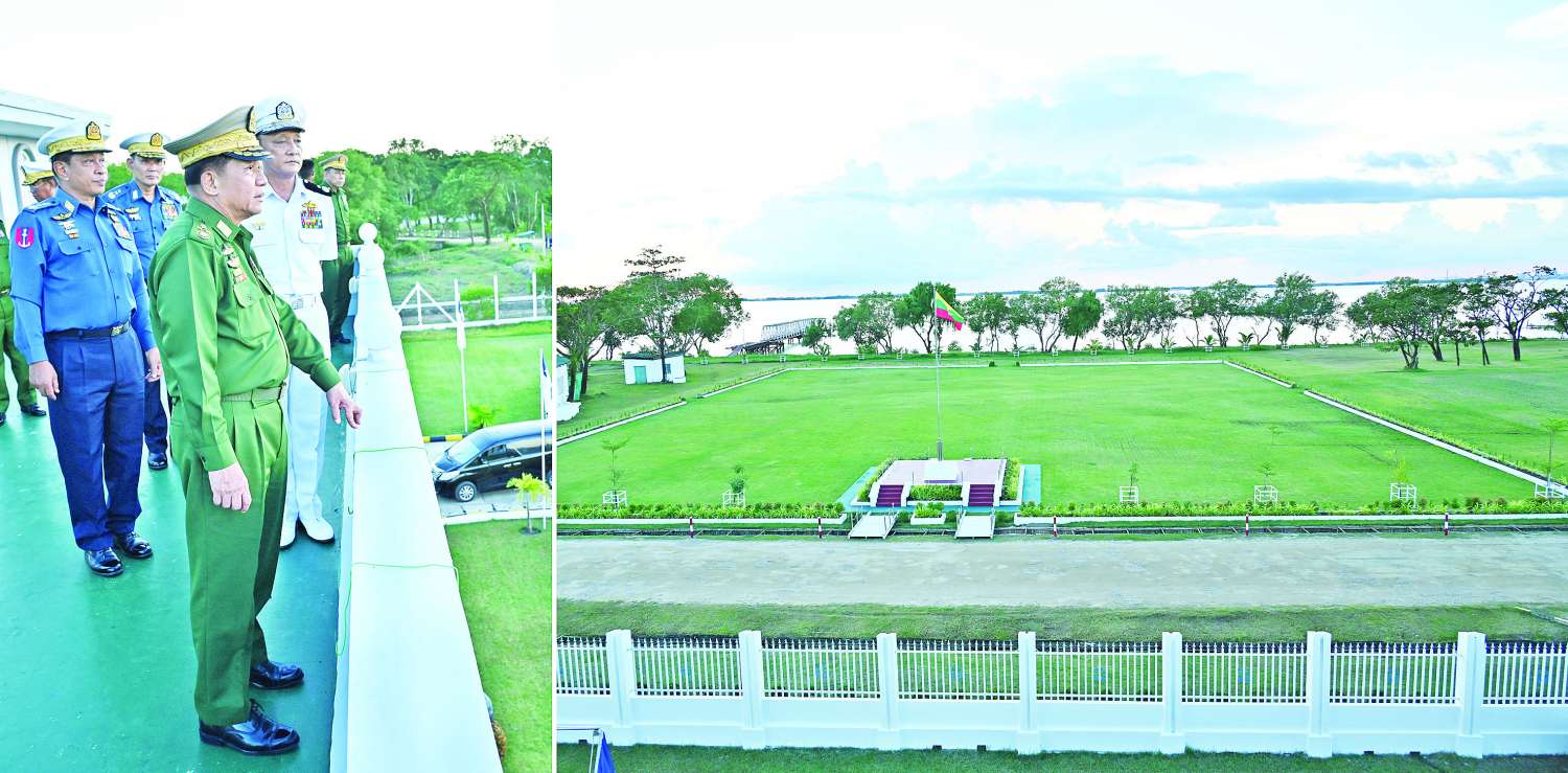 ဆက်လက်ပြီး နိုင်ငံတော်စီမံအုပ်ချုပ်ရေးကောင်စီဥက္ကဋ္ဌ တပ်မတော်ကာကွယ်ရေးဦးစီးချုပ်နှင့် အဖွဲ့ဝင်များသည် ကမ်းခြေစောင့်တပ်ဖွဲ့ကွပ်ကဲမှုဌာနချုပ်ဝင်းအတွင်း လှည့်လည်ကြည့်ရှုစစ်ဆေးခဲ့ပြီး တာဝန်ရှိသူများ၏ တင်ပြချက်များအပေါ်လိုအပ်သည်များ လမ်းညွှန်မှာကြားခဲ့ကြောင်း သတင်းရရှိသည်။