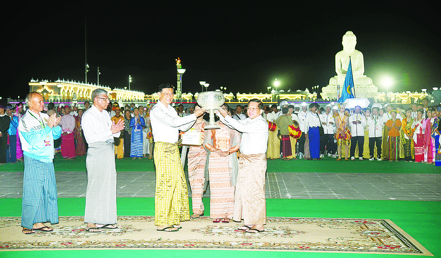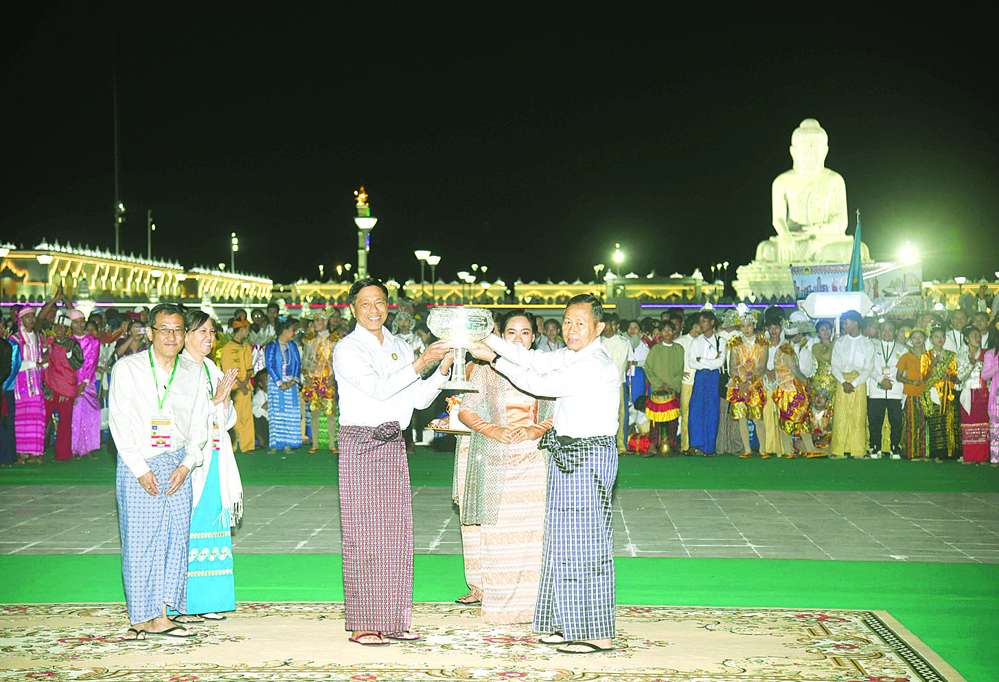 ယင်းနောက် ပဉ္စမဆုရရှိသည့် နေပြည်တော်ကောင်စီကိုယ်စားပြုအသင်းအား ကောင်စီဝင် ဗိုလ်ချုပ်ကြီး မြထွန်းဦးကလည်းကောင်း၊ စတုတ္ထဆုရရှိသည့် ကချင်ပြည်နယ်ကိုယ်စားပြုအသင်းအား ကောင်စီတွဲဖက်အတွင်းရေးမှူးကလည်းကောင်း၊ တတိယဆုရရှိသည့် စစ်ကိုင်းတိုင်းဒေသကြီးကိုယ်စားပြုအသင်းအား ကောင်စီအတွင်းရေးမှူးကလည်းကောင်း၊ ဒုတိယဆုရရှိသည့် တနင်္သာရီတိုင်းဒေသကြီးကိုယ်စားပြုအသင်းအား နိုင်ငံတော်စီမံအုပ်ချုပ်ရေးကောင်စီဒုတိယဥက္ကဋ္ဌ ဒုတိယဝန်ကြီးချုပ်ကလည်းကောင်း ဆုဖလား၊ ဂုဏ်ပြုချီးမြှင့်ငွေနှင့် ဂုဏ်ပြုမှတ်တမ်းလွှာများ ပေးအပ်ချီးမြှင့်ကြသည်။