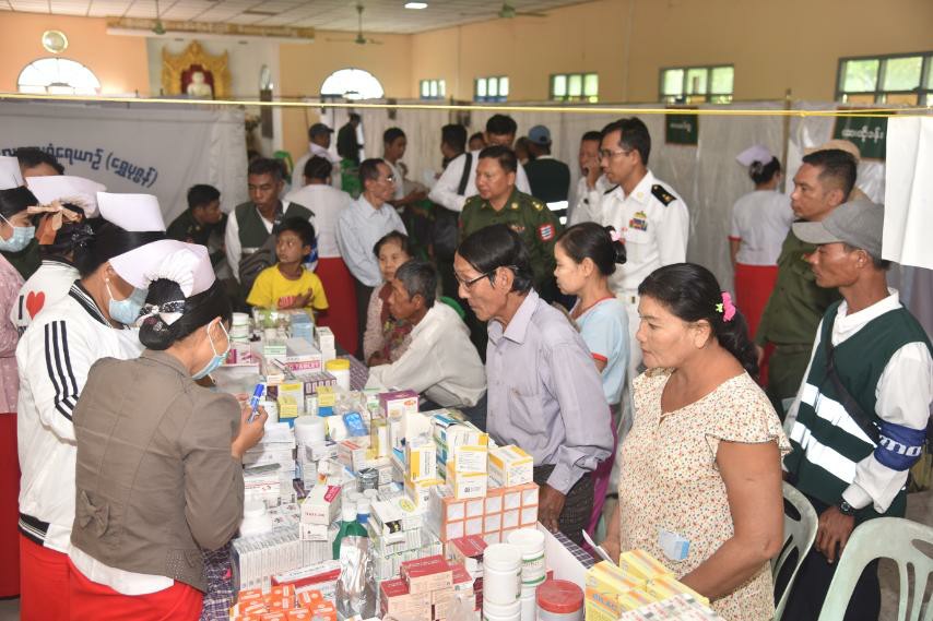 ဧရာဝတီမြစ်ကြောင်းတစ်လျှောက်ရှိ ဒေသခံပြည်သူများအား ကျန်းမာရေးစောင့်ရှောက်မှုလုပ်ငန်းများ ဆောင်ရွက်ပေးရန်အတွက် တပ်မတော်မြစ်တွင်းသွားဆေးရုံ ရေယာဉ်(ရွှေပုဇွန်)၊ မြစ်ရေယာဉ် (စကု)တို့နှင့်အတူ လိုက်ပါလာသည့် တပ်မတော်မှ ပါရဂူများ၊ ဆေးမှူးများ၊ သူနာပြုများပါဝင်သော နယ်လှည့်အထူးကုဆေးအဖွဲ့သည် ယနေ့တွင် ဧရာဝတီတိုင်းဒေသကြီး၊ မအူပင်မြို့နယ်၊ ထနီးကျေးရွာ အောင်ကျိုက္ခမီ ဘုန်းကြီးကျောင်းရှိ ဓမ္မရတနာဗိမာန်တွင်အခြေပြု၍ အဆိုပါမြို့နှင့်ပတ်ဝန်းကျင်ကျေးရွာများမှ ဒေသခံပြည်သူ ၄၅၅ ဦးတို့ကို ကျန်းမာရေးစောင့်ရှောက်မှုလုပ်ငန်းများ ဆောင်ရွက်ပေးသည်။