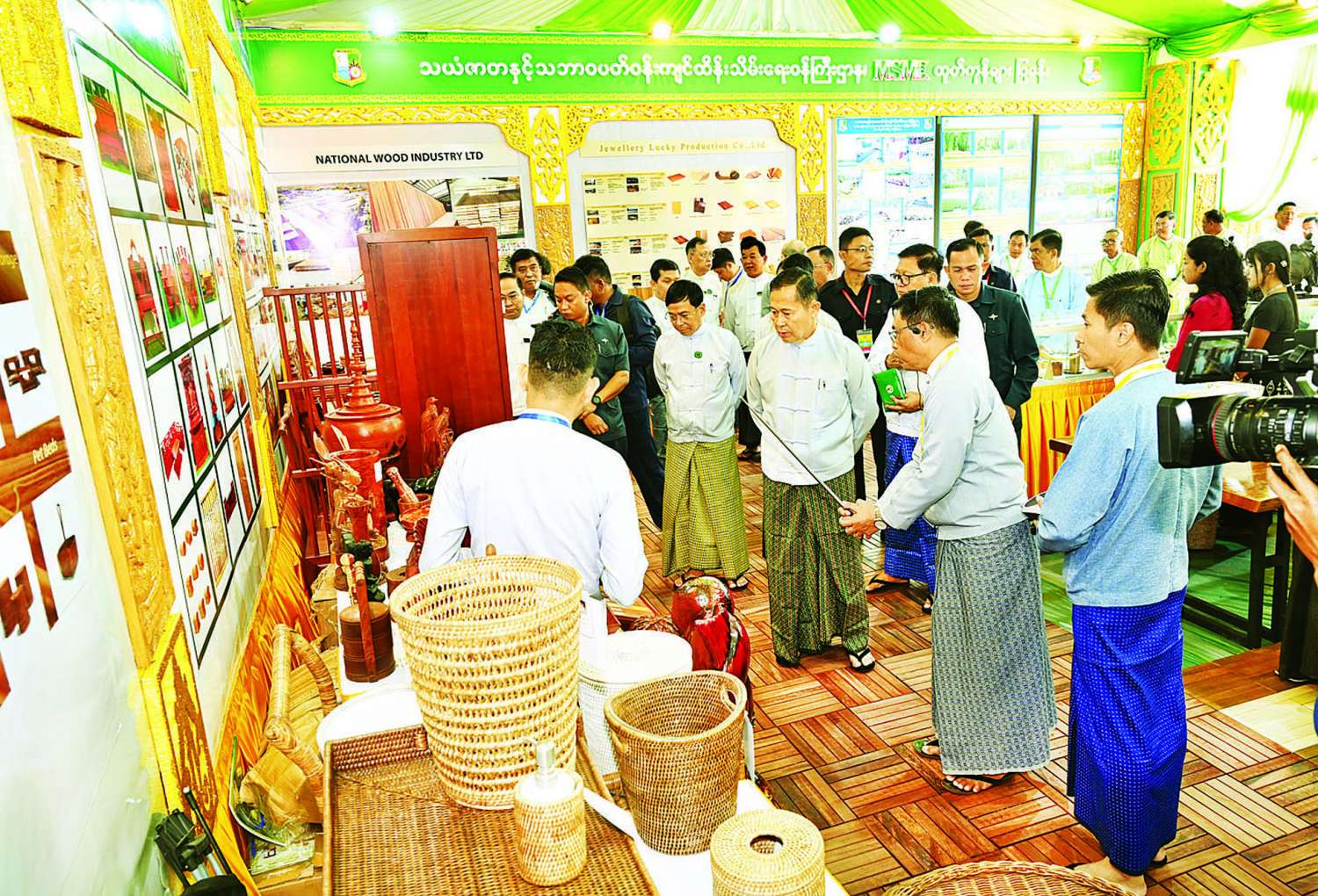 ထို့နောက် MSME လုပ်ငန်းကော်မတီဥက္ကဋ္ဌ နိုင်ငံတော်စီမံအုပ်ချုပ်ရေးကောင်စီ ဒုတိယဥက္ကဋ္ဌ ဒုတိယဝန်ကြီးချုပ် ဒုတိယဗိုလ်ချုပ်မှူးကြီးစိုးဝင်းသည် အဖွဲ့ဝင်များနှင့်အတူ ဝန်ကြီးဌာနပြခန်းများ၊ တိုင်းဒေသကြီး/ပြည်နယ်ပြခန်းများ၊ Digital Corner နည်းပညာပြခန်း၊ MSME နှင့် ချိတ်ဆက်ထားသည့် ဆက်စပ်လုပ်ငန်းပြခန်း၊ Business Matching Hall တွင် ပြည်ပနိုင်ငံများရှိ မြန်မာသံရုံးအသီးသီးမှ စီးပွားရေးသံမှူးများနှင့် ပြည်ပပို့ကုန်ပို့လိုသည့် ပြည်တွင်းလုပ်ငန်းရှင်များ အပြန်အလှန် ဆက်သွယ်နိုင်ရေးဆောင်ရွက်ပေးထားမှု ဝန်ဆောင်မှုပြခန်း၊ ပြန်ကြားရေးဝန်ကြီးဌာနမှ လုပ်ငန်းရှင်များအတွက် ကြော်ငြာရိုက်ကူးထုတ်လုပ်ပေးနိုင်မှု သရုပ်ပြခန်းအပါအဝင် ပြည်ပစက်ပစ္စည်းနှင့် ထုတ်ကုန်ပြခန်းများ၊ အသေးစားစက်မှုလက်မှုလုပ်ငန်းနှင့် ကုန်ထုတ်သမဝါယမပြခန်းများ၏ ကဏ္ဍစုံလင်စွာ ပြခန်းအလိုက် ခင်းကျင်းပြသထားမှုများကို လိုက်လံကြည့်ရှုအားပေးပြီး လိုအပ်သည်များအား တာဝန်ရှိသူများနှင့် ပေါင်းစပ်ညှိနှိုင်းဆောင်ရွက်ပေးခဲ့သည်။