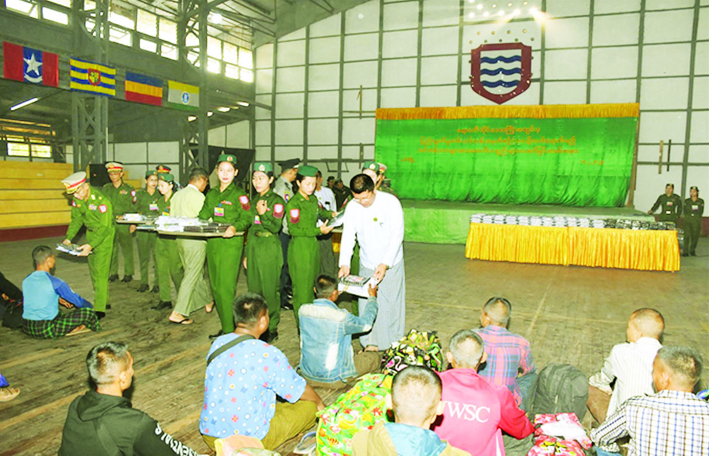 ဦးစွာ တိုင်းမှူးက အမှာစကားပြောကြားပြီး ပြည်သူ့စစ်မှုထမ်း သင်တန်းအမှတ်စဉ် (၁၀) သို့ တက်ရောက်မည့် နိုင်ငံ့သားကောင်းရတနာများအတွက် အသုံးအဆောင်ပစ္စည်းများပေးအပ်သည်။ ထို့နောက်တိုင်းမှူးနှင့်တာဝန်ရှိသူများသည် နိုင်ငံ့သားကောင်းရတနာများအား လိုက်လံနှုတ်ဆက် အားပေးစကားပြောကြားပြီး လိုအပ်သည်များ ပေါင်းစပ်ညှိနှိုင်းဆောင်ရွက်ပေးခဲ့ကြောင်း သတင်းရရှိသည်။