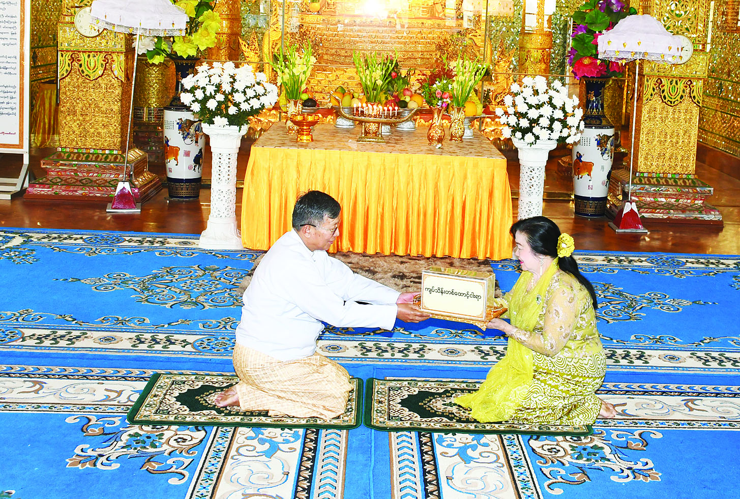 ယင်းနောက် အလှူရှင်များက ရွှေစင်ရွှေပြားများကပ်လှူနိုင်ရေးအတွက် အလှူငွေများ ပေးအပ်လှူဒါန်းကြရာ လုံးတော်ပြည့် ရွှေသင်္ကန်းကပ်လှူပူဇော်ရေး ဦးစီးကော်မတီနာယက သာသနာရေးနှင့် ယဉ်ကျေးမှုဝန်ကြီးဌာန ပြည်ထောင်စုဝန်ကြီးဦးတင်ဦးလွင်နှင့် လုံးတော်ပြည့် ရွှေသင်္ကန်းကပ်လှူပူဇော်ရေးဦးစီးကော်မတီဥက္ကဋ္ဌ ရန်ကုန်တိုင်းဒေသကြီးအစိုးရအဖွဲ့ လူမှုရေးရာဝန်ကြီး ဦးဌေးအောင်တို့က လက်ခံရယူပြီး ဂုဏ်ပြုမှတ်တမ်းလွှာများ ပြန်လည်ပေးအပ်ကြသည်။