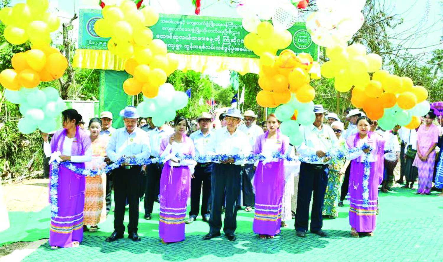 ဦးစွာ နိုင်ငံတော်စီမံ အုပ်ချုပ်ရေးကောင်စီအဖွဲ့ဝင် မန်းငြိမ်းမောင်၊ တိုင်းဒေသကြီးဝန်ကြီးချုပ် ဦးတင်မောင်ဝင်း၊ တိုင်းဒေသကြီး သယံဇာတရေးရာဝန်ကြီးတို့သည် လမ်းသစ်ကို ဖဲကြိုးဖြတ်ဖွင့်လှစ်ပေးပြီး စုပေါင်းမှတ်တမ်းတင်ဓာတ်ပုံရိုက်သည်။ ယင်းနောက် ကွန်ကရစ်လမ်းသစ်ကို လှည့်လည်ကြည့်ရှုစစ်ဆေးကြပြီး ဖျော်ဖြေရေးအဖွဲ့များအား ဂုဏ်ပြုချီးမြှင့်ငွေများပေးအပ်ကာ ဒေသခံပြည်သူများအား ရင်းရင်းနှီးနှီးတွေ့ဆုံနှုတ်ဆက်သည်။
