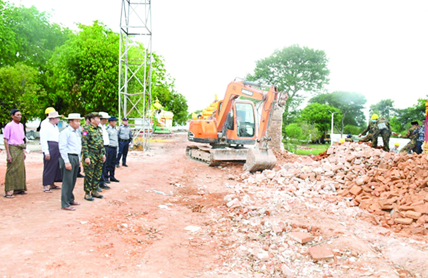 ထို့အတူ ကာကွယ်ရေးဦးစီးချုပ်ရုံး(ကြည်း)မှ ဒုတိယဗိုလ်ချုပ်ကြီး စိုးတင့်နိုင်သည် တာဝန်ရှိသူများနှင့်အတူ မန္တလေးမြို့ ချမ်းအေးသာစံမြို့နယ်ရှိ အနောက်ထီးလင်းတိုက်၊ အမရပူရမြို့နယ်ရှိ မဟာဝိဇယရံသီပုထိုးတော်မြတ်ကြီးမြတ်စွာဘုရား၊ ကျောက်တော်ကြီးမြတ်စွာဘုရားနေရာများရှိ ငလျင်ဒဏ်ကြောင့်ပြိုကျပျက်စီးခဲ့သည့် အပျက်အစီးများအား ဖယ်ရှားရှင်းလင်းခြင်းနှင့် ဆောင်ရွက်ပြီးစီးမှု အခြေအနေများ၊ ဘုရားစေတီပုထိုးများတွင် ရှေးမူမပျက် ပြန်လည်ပြုပြင်တည်ဆောက်ရေးလုပ်ငန်းများ ဆောင်ရွက်နေမှုအခြေအနေများအား သွားရောက်ကြည့်ရှုအားပေးပြီး ပြန်လည်တည်ဆောက်ရေး လုပ်ငန်းများဆောင်ရွက်နိုင်ရေးတို့အတွက် တာဝန်ရှိသူများအား မှာကြား၍ လိုအပ်သည်များ ပေါင်းစပ်ညှိနှိုင်း ဆောင်ရွက်ပေးသည်။