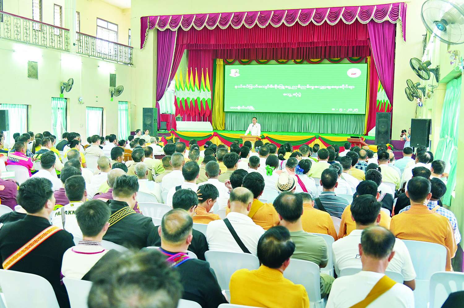 ထို့နောက် တာချီလိတ်မြို့ မြို့တော်ခန်းမတွင် ခရိုင်၊ မြို့နယ်အဆင့် ဌာနဆိုင်ရာများ၊ စာပေနှင့်ယဉ်ကျေးမှုအဖွဲ့များ၊ လူမှုရေးအသင်းအဖွဲ့များ၊ ရပ်ကွက်နှင့် ကျေးရွာအုပ်ချုပ်ရေးမှူးများ၊ ဒေသခံပြည်သူများနှင့်တွေ့ဆုံ၍ သစ်တောသစ်ပင်များ ထိန်းသိမ်းကာကွယ်ရေး၊ သဘာဝပတ်ဝန်း ကျင်ထိန်းသိမ်းရေး၊ နယ်စပ်ဖြတ်ကျော် မီးခိုးမြူငွေ့ညစ်ညမ်းမှုနှင့် Fire Hotspots ဖြစ်ပွားမှုလျှော့ချရေးဆိုင်ရာကိစ္စရပ်များနှင့်ပတ်သက်၍ ဆွေးနွေးပြောကြားသည်။