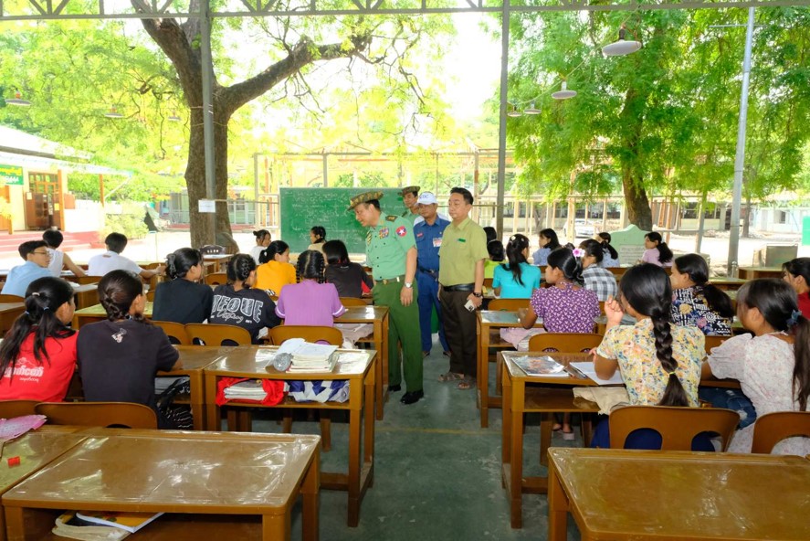 ထို့အတူ ကာကွယ်ရေးဦးစီးချုပ်ရုံး (ကြည်း) မှ ဒုတိယဗိုလ်ချုပ်ကြီး စိုးတင့်နိုင်သည် တာဝန်ရှိသူများနှင့်အတူ မန္တလေးမြို့၊ အမရပူရမြို့နယ်ရှိ အမှတ် (၁) အခြေခံပညာအထက်တန်းကျောင်းသို့ သွားရောက်၍ ယာယီကျောင်းဆောင်ဆောက်လုပ်မည့်နေရာတွင် မြေလုပ်ငန်းများ တူးဖော်ဆောင်ရွက်နေမှု အခြေအနေများအားလည်းကောင်း၊ ဆရာ/ဆရာမများ၊ ရပ်မိရပ်ဖများ၊ တပ်မတော်သားများ စုပေါင်း၍ ငလျင်ဒဏ်ကြောင့် ပြိုကျပျက်စီးသွားသော အပျက်အစီးများ ဖယ်ရှားရှင်းလင်းပြီး ပြိုကျပျက်စီးသွားသော အုတ်တံတိုင်းနေရာတွင် သွပ်ပြားများဖြင့် ယာယီခြံစည်းရိုးဆောက်လုပ်ပေးနေမှု အခြေအနေများအားလည်းကောင်း လိုက်လံကြည့်ရှုစစ်ဆေး၍ တက္ကသိုလ်ဝင်စာမေးပွဲပြန်လည်ဖြေဆိုရန်အတွက် စခန်းသွင်းလေ့ကျင့်သင်ကြားနေသည့် ကျောင်းသား/ကျောင်းသူများနှင့် ဆရာ/ဆရာမများအား တွေဆုံအားပေးစကားပြောကြားကာ လိုအပ်သည်များ ပေါင်းစပ်ညှိနှိုင်းဆောင်ရွက်ပေးသည်။