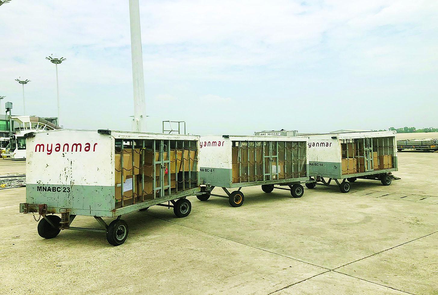 ယခုအခါ မေလ ၁၃ ရက်နေ့မှ ၁၉ ရက်နေ့အထိ ရက်သတ္တပတ် ၁ ပတ်အတွင်း အိန္ဒိယနိုင်ငံ၊ မလေးရှားနိုင်ငံ၊ ရုရှားဖက်ဒရေးရှင်းနိုင်ငံနှင့် Singapore Lotus Charity Society တို့မှ ထပ်မံ ပေးပို့လှူဒါန်းလာသော စားသောက်ကုန်ပစ္စည်း၊ လူသုံးကုန်ပစ္စည်း၊ အိမ်သုံးပစ္စည်း၊ ဆေးနှင့် ဆေးပစ္စည်းများအနက် ဆေးနှင့် ဆေးပစ္စည်းများကို ကျန်းမာရေးစောင့်ရှောက်မှု လုပ်ငန်းကော်မတီ (ကျန်းမာရေးဝန်ကြီးဌာန) သို့လည်းကောင်း၊ စားသောက်ကုန်ပစ္စည်း၊ လူသုံးကုန်ပစ္စည်း၊ အိမ်သုံးပစ္စည်းများကို နေပြည်တော်အတွင်းရှိ လိုအပ်သည့် ဝန်ကြီးဌာနများသို့လည်းကောင်း လွှဲပြောင်းထောက်ပံ့ပေးခဲ့ပါသည်။