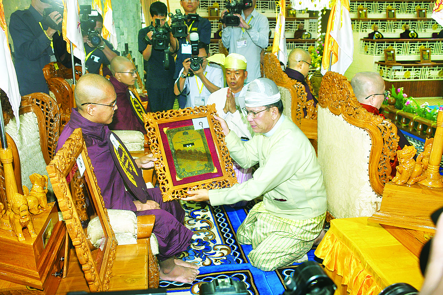 ယင်းနောက် သာသနာရေးနှင့်ယဉ်ကျေးမှုဝန်ကြီးဌာန ပြည်ထောင်စုဝန်ကြီးဦးတင်ဦးလွင်က သာသနာရေးဆိုင်ရာများကို လျှောက်ထားသည်။