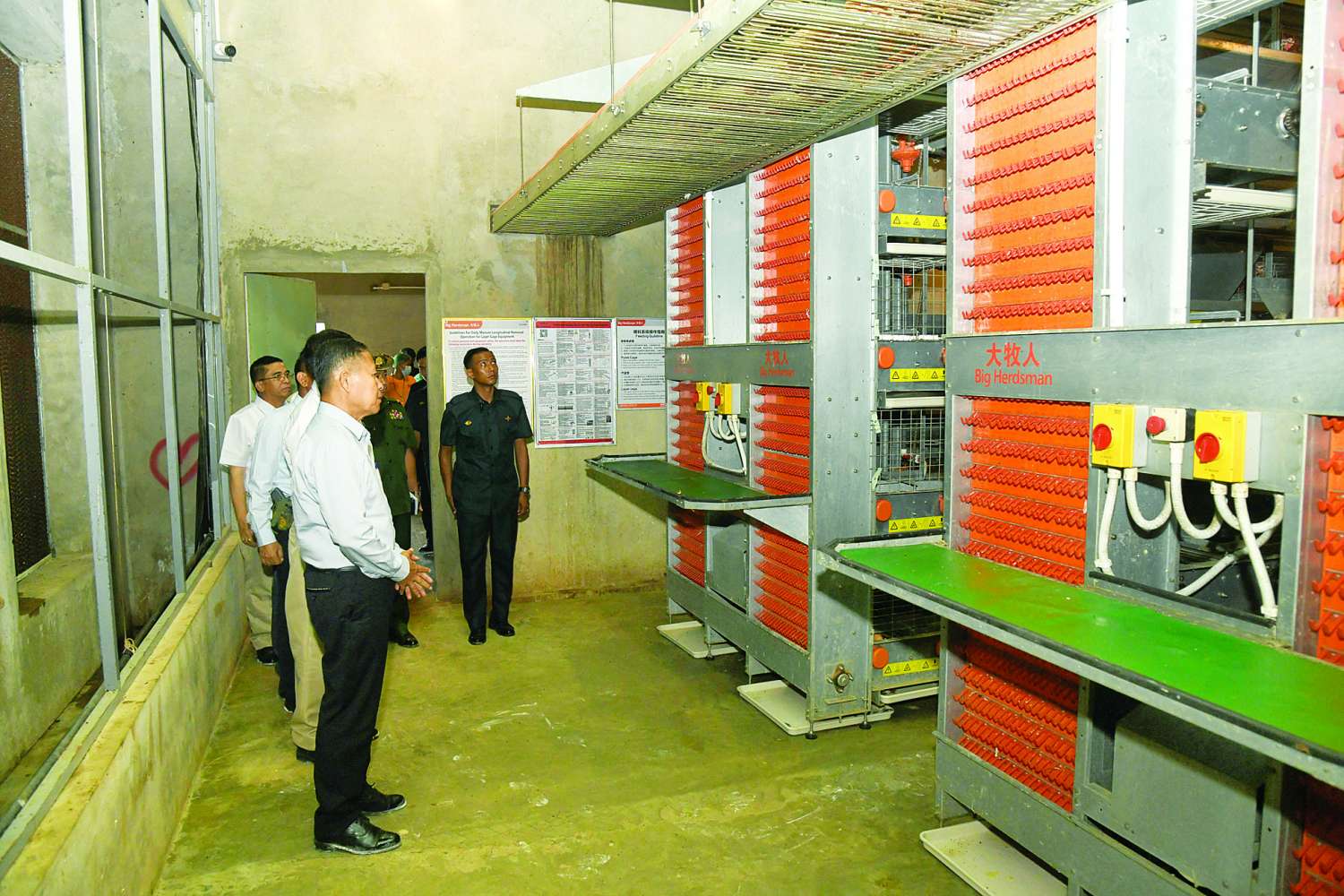 ထို့နောက် နိုင်ငံတော်စီမံအုပ်ချုပ်ရေးကောင်စီဒုတိယဥက္ကဋ္ဌ ဒုတိယဝန်ကြီးချုပ် ဒုတိယဗိုလ်ချုပ်မှူးကြီးစိုးဝင်းနှင့် အဖွဲ့ဝင်များသည် ဇုန်အတွင်း DYL အသားတိုးဝက်မွေးမြူရန် တည်ဆောက်ထားရှိ သည့် အလုံပိတ်အအေးပေးစနစ် (Evaporated Auto Driking Auto Feeding System) ဝက်ခြံများနှင့် Lohmann Brown (Germany) ဥစားကြက်များကို အလုံပိတ်အအေးပေးစနစ် (Evaporated Fully Automatic System) ဖြင့် မွေးမြူထားရှိမှုများကို လိုက်လံကြည့်ရှုစစ်ဆေးပြီး သိရှိလိုသည်များ မေးမြန်းဆွေးနွေးကာ လိုအပ်သည်များကို တာဝန်ရှိသူများအား မှာကြားခဲ့ကြောင်း သတင်းရရှိသည်။