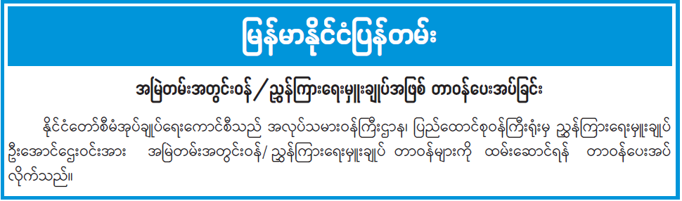 အမြဲတမ်းအတွင်းဝန်/ညွှန်ကြားရေးမှူးချုပ်အဖြစ် တာဝန်ပေးအပ်ခြင်း