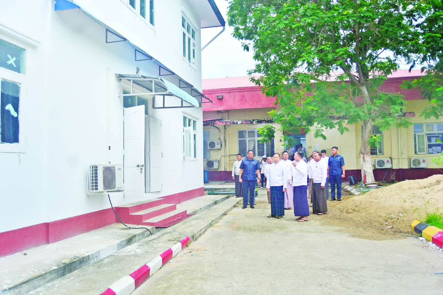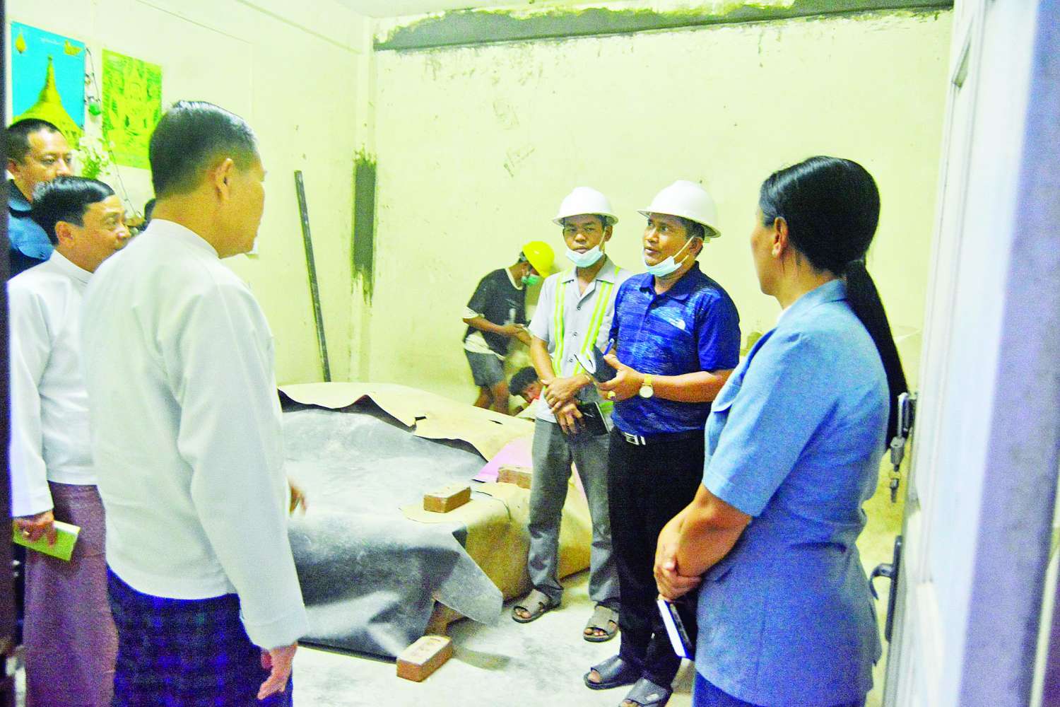 ထို့နောက် နိုင်ငံတော်စီမံအုပ်ချုပ်ရေးကောင်စီဒုတိယဥက္ကဋ္ဌ ဒုတိယဝန်ကြီးချုပ်နှင့် အဖွဲ့ဝင် များသည် သဇင် (၂) အပျိုဆောင်အဆောင်(၁)နှင့် သဇင်(၅) လူပျိုဆောင်အဆောင်(၁၁)တို့၌ ငလျင်ဒဏ်ကြောင့် အနည်းငယ်ထိခိုက်ခဲ့သည့်နံရံများကို ဆောက်လုပ်ရေး လုပ်ငန်းရှင်များအသင်းမှ ဝန်ထမ်းများက Sikalatex ဆေးရည်၊ ကျုံ့ခြင်းမရှိသော ဘိလပ်မြေအခြေခံ ဘက်စုံသုံးဆေးမှုန့် (SikaGrout) နှင့် ဘိလပ်မြေများရောစပ်၍ ကွဲအက်ခဲ့သည့် နေရာများအား ပြန်လည်ပြုပြင်ခြင်းလုပ်ငန်းများ ဆောင်ရွက်နေမှုကို လိုက်လံကြည့်ရှုစစ်ဆေးပြီး လိုအပ်သည်များကို တာဝန်ရှိသူများနှင့် ညှိနှိုင်းဆောင်ရွက်ပေးခဲ့ကြောင်း သတင်းရရှိသည်။