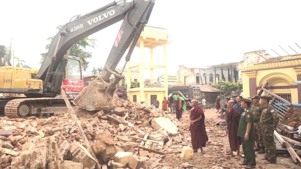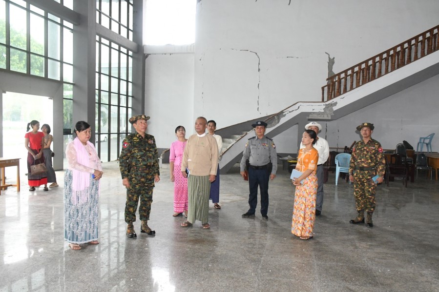 အလားတူ ကာကွယ်ရေးဦးစီးချုပ်ရုံး(ကြည်း)မှ ဒုတိယဗိုလ်ချုပ်ကြီး မျိုးမိုးအောင်နှင့် တာဝန်ရှိသူများသည် ယနေ့နံနက်ပိုင်းတွင် မန္တလေးမြို့၊ မဟာအောင်မြေမြို့နယ်၊ ရပ်ကွက်များရှိ ငလျင်ဒဏ်ကြောင့် ထိခိုက်ပျက်စီးခဲ့သော အန္တရာယ်ရှိလူနေအဆောက်အအုံများတွင် ဖြိုချရှင်းလင်းရန်ကျန် အဆောက်အအုံများအား လုပ်ငန်းဆောင်ရွက်ရန် ပြင်ဆင်ထားရှိမှု အခြေအနေများအားလည်းကောင်း၊ ဖြိုချပြီးအပျက်အစီးများအား အပြီးသတ်ရှင်းလင်းနေမှုအခြေအနေများအားလည်းကောင်း၊ မဟာအောင်မြေမြို့နယ်၊ ဒေးဝန်းအရှေ့ရပ်ကွက်ရှိ ကင်းဝန်မင်းကြီး ကျောင်းတိုက်သို့သွားရောက်၍ ငလျင်ဒဏ်ကြောင့် ထိခိုက်ပျက်စီးခဲ့သော ပင်မကျောင်းဆောင်နှင့် သိမ်ကျောင်းနေရာများရှိ ဖြိုချပြီးအပျက်အစီးများအား စက်ယန္တရားကြီးများအသုံးပြု၍ အပြီးသတ်ရှင်းလင်းနေမှု အခြေအနေများအား ကြည့်ရှု၍ တာဝန်ရှိသူများ၏ တင်ပြချက်များအပေါ် လိုအပ်သည်များ ပေါင်းစပ်ညှိနှိုင်းဆောင်ရွက်ပေးသည်။