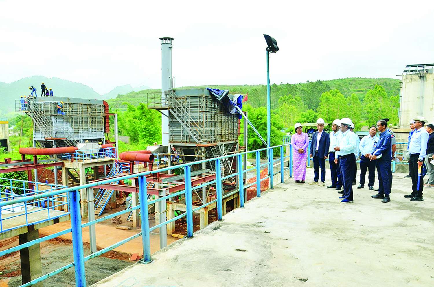 ယင်းနောက် Machine Hall အတွင်း ဓာတ်အားပေးစက်များ မောင်းနှင်၍ ဓာတ်အားထုတ်လုပ်ပေးနေမှု၊ အဆင့် (၂) ကျောက်မီး သွေးအခြောက်ခံစက်တည်ဆောက်ခြင်းလုပ်ငန်းများ ၇၈ ရာခိုင်နှုန်း ဆောင်ရွက်ပြီးစီးမှုနှင့် လက်ရှိတည်ဆောက်ရေးလုပ်ငန်းများ ဆောင်ရွက်နေမှုတို့ကို လှည့်လည်ကြည့်ရှုစစ်ဆေးပြီး လိုအပ်သည်များ ဖြည့်ဆည်းဆောင်ရွက်ပေးသည်။