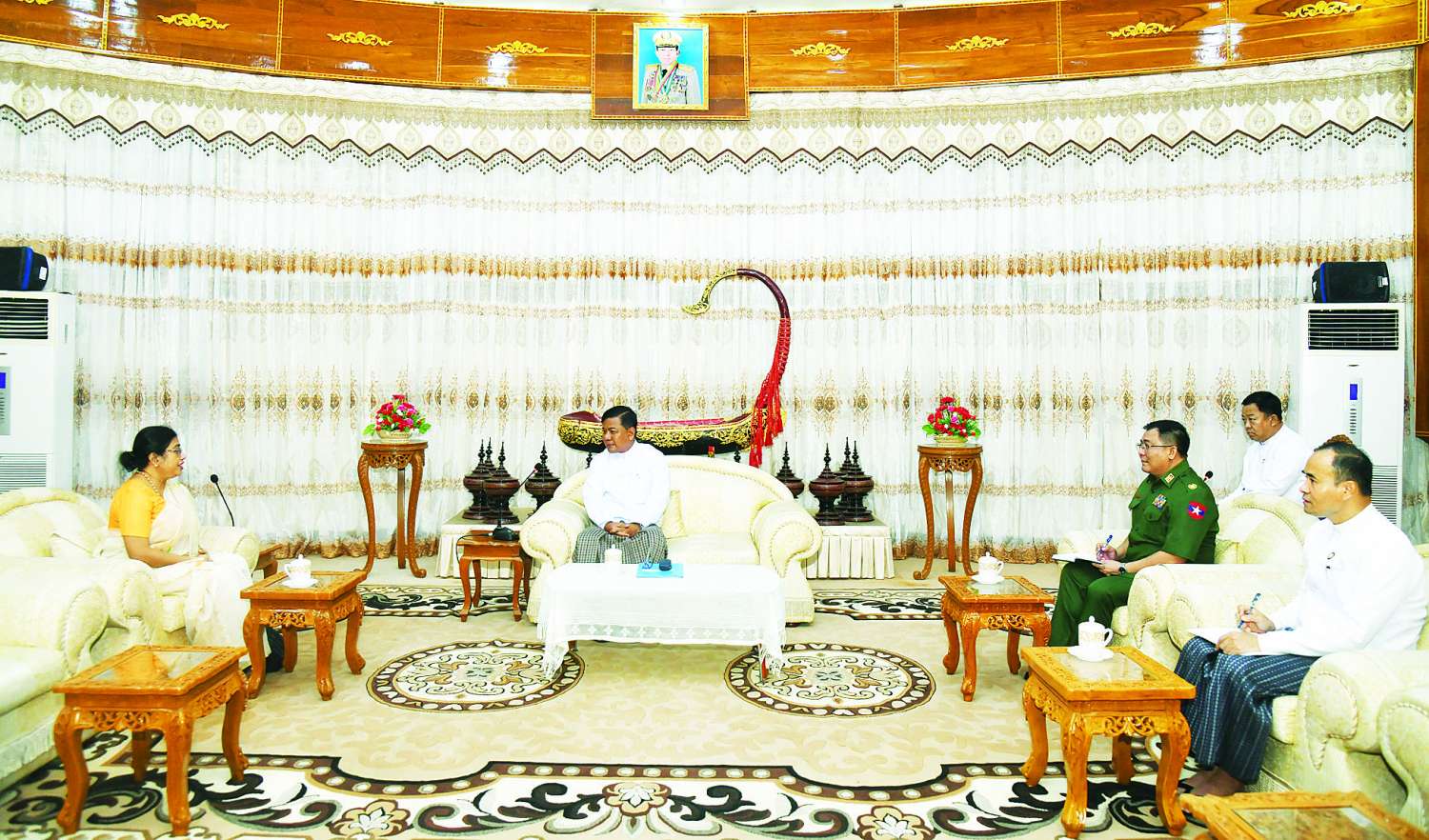 နိုင်ငံတော်စီမံအုပ်ချုပ်ရေးကောင်စီအဖွဲ့ဝင်၊ ဒုတိယဝန်ကြီးချုပ်နှင့် ကာကွယ်ရေးဝန်ကြီးဌာန ပြည်ထောင်စုဝန်ကြီး ဗိုလ်ချုပ်ကြီးမောင်မောင်အေးအား မြန်မာနိုင်ငံဆိုင်ရာ သီရိလင်္ကာသံအမတ်ကြီး H.E. Mrs. Prabashini Ponnamperuma က ယနေ့ မွန်းလွဲပိုင်းတွင် ပြည်ထောင်စုဝန်ကြီးရုံးဧည့်ခန်းမ၌ လာရောက်တွေ့ဆုံသည်။