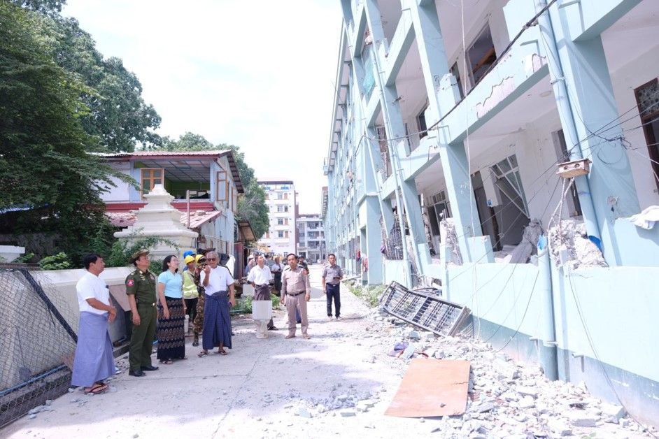 အလားတူ ကာကွယ်ရေးဦးစီးချုပ်ရုံး(ကြည်း)မှ ဒုတိယဗိုလ်ချုပ်ကြီး စိုးတင့်နိုင်နှင့် တာဝန်ရှိသူများသည် ငလျင်ဒဏ်ကြောင့် ထိခိုက်ပျက်စီးမှုများဖြစ်ပေါ်ခဲ့သည့် မန္တလေးမြို့၊ ချမ်းမြသာစည်မြို့နယ်၊ ကျွန်းလုံးဥသျှောင်ရပ်ကွက်၊ မဟာမုနိဘုရားကြီး ဘဏ္ဍာတော်ပိုင်တိုက်တန်းရှိ ဝန်ထမ်းလိုင်းခန်းအပျက်အစီးများအား စက်ယန္တရားကြီးများအသုံးပြု၍ ဖယ်ရှားရှင်းလင်းနေမှု၊ မဟာအောင်မြေမြို့နယ်၊ ဒေဝန်းအရှေ့ရပ်ကွက်ရှိ ရတနာပုံသာ ဆုတောင်းရ(ဦးပေစိ)ရှိ အပျက်အစီးများအား ဖယ်ရှားရှင်းလင်းနေမှုနှင့် အောင်မြေသာစံမြို့နယ်၊ ဒေါနဘွားရပ်ကွက်ရှိ မဟာအတုလဝေယံ(အတုမရှိ) ကျောင်းဆောင်တော်ကြီးရှိ စူဠာမုနိရုပ်ရှင်တော်မြတ်ကြီး၏ ပလ္လင်တော်ပြန်လည်ပြုပြင်ခြင်း၊ ရုပ်ရှင်တော်မြတ်ကြီး၏ အပေါ်ရှိ မျက်နှာကျက်အမိုးအား အပေါ်သို့ မြှင့်တင်ခြင်းနှင့် ဓာတ်လှေကားတပ်ဆင်ခြင်းလုပ်ငန်း ဆောင်ရွက်နေမှုတို့ကို ကြည့်ရှုစစ်ဆေးပြီး တာဝန်ရှိသူများ၏ တင်ပြချက်များအပေါ် လိုအပ်သည်များ ပေါင်းစပ်ညှိနှိုင်း ဆောင်ရွက်ပေးခဲ့ကြောင်း သတင်းရရှိသည်။