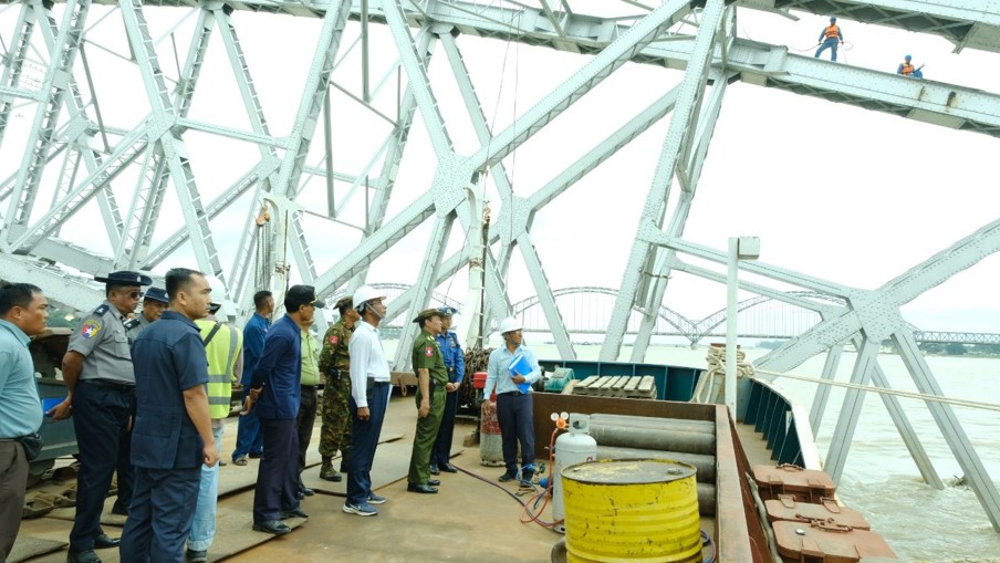 အလားတူ ကာကွယ်ရေးဦးစီးချုပ်ရုံး(ကြည်း)မှ ဒုတိယဗိုလ်ချုပ်ကြီး စိုးတင့်နိုင်နှင့် တာဝန်ရှိသူများသည် မန္တလေးမြို့၊ အမရပူရမြို့နယ်၊ ရွှေကြက်ယက်ကျေးရွာအုပ်စု၊ သပြေတန်းကျေးရွာရှိ ငလျင်ဒဏ်ကြောင့်ပြိုကျပျက်စီးခဲ့သော စစ်ကိုင်းတံတား (အင်းဝ) ၌ တံတားအပျက်အစီးများ ရှင်းလင်းဖယ်ရှားခြင်းလုပ်ငန်းများ ဆောင်ရွက်ပြီးစီးမှုအခြေအနေများ၊ မြန်မာ့စီးပွားရေးကော်ပိုရေးရှင်း (MEC)မှ တာဝန်ယူဆောင်ရွက်နေသော ခုံးအမှတ် (၄) နှင့် (၅) တို့ကို ကျွမ်းကျင်လုပ်သားများ၊ စက်ယန္တရားများနှင့် နည်းပညာအထောက်အကူပြု၍ စနစ်တကျစီမံခန့်ခွဲ ဖယ်ရှားရှင်းလင်းခြင်းလုပ်ငန်းများ ဆောင်ရွက်နေမှုနှင့် ပြီးစီးမှုအခြေအနေများကို သွားရောက်ကြည့်ရှုစစ်ဆေး၍ တာဝန်ရှိသူများ၏ တင်ပြချက်များ အပေါ်လိုအပ်သည်များ ပေါင်းစပ်ညှိနှိုင်းဆောင်ရွက်ပေးသည်။