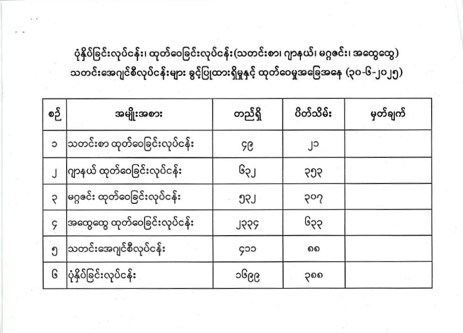 ပုံနှိပ်ခြင်းလုပ်ငန်း၊ ထုတ်ဝေခြင်းလုပ်ငန်း (သတင်းစာ၊ ဂျာနယ်၊ မဂ္ဂဇင်း၊ အထွေထွေေ) သတင်းအေဂျင်စီလုပ်ငန်းများ ခွင့်ပြုထားရှိမှုနှင့် ထုတ်ဝေမှုအခြေအနေ (၃၀-၆-၂၀၂၅) 07/21/2025