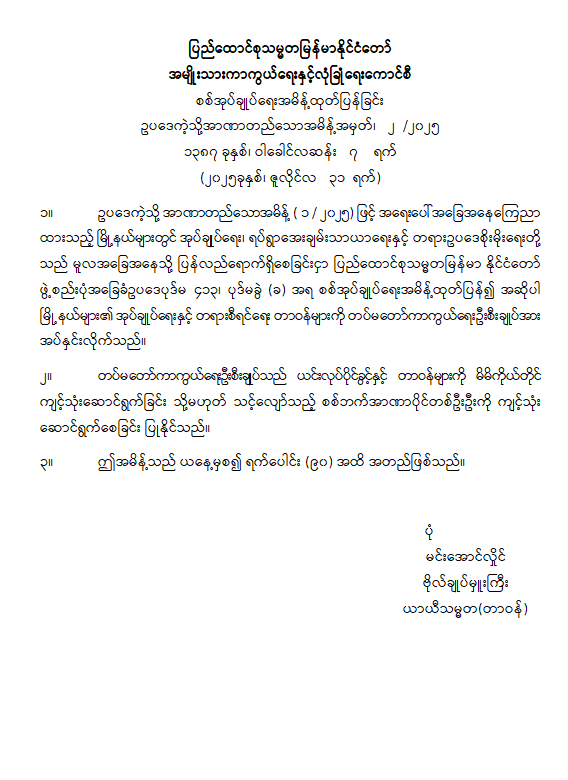 ဝန်ကြီးဌာန ကြေညာချက်များ