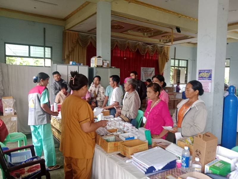 ထို့အပြင် တပ်မတော်မှ ဆရာဝန်များက ကျန်းမာရေးဝန်ကြီးဌာနမှ ဆရာဝန်များ၊ ကျန်းမာရေးဝန်ထမ်းများနှင့် ပူးပေါင်း၍ ဒေသခံတိုင်းရင်းသားပြည်သူများ၏ ကျန်းမာရေးစောင့်ရှောက်မှုလုပ်ငန်းများ အဆင်ပြေချောမွေ့စေရေးအတွက် မြနန်းတော်ဝင်မင်္ဂလာခန်းမ၌ ယာယီဆေးရုံဖွင့်လှစ်ပြီး ဆေးကုသပေးခြင်းများ ဆောင်ရွက်ပေးလျက်ရှိရာ ယနေ့တွင် ဒေသခံတိုင်းရင်းသားပြည်သူ ၁၄၄ ဦးတို့ကို လိုအပ်သည့် ကျန်းမာရေးစောင့်ရှောက်မှုများ ဆောင်ရွက်ပေးခဲ့ကြကြောင်း သတင်းရရှိသည်။