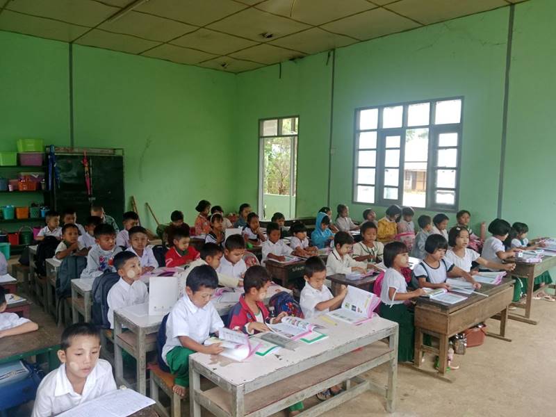 ထိုသို့ ကျောင်းနေအရွယ်ကလေးများအား တန်းစဉ်အလိုက် ပညာသင်ကြားနိုင်ရေးအတွက် အခြေခံပညာကျောင်းများကို ဖွင့်လှစ်ပညာသင်ကြားပေးလျက်ရှိရာ ယနေ့တွင်လည်း ကျောင်းသား/ကျောင်းသူ ၁၈၁၉ ဦး အေးချမ်းပျော်ရွှင်စွာ တက်ရောက်ပညာသင်ကြားလျက်ရှိသည့်အပြင် ထပ်မံလာရောက်ကျောင်းအပ်နှံသူ ကျောင်းသား/ကျောင်းသူများကိုလည်း ကျောင်းအပ်လက်ခံခြင်းများကို ဆက်လက်ဆောင်ရွက်ပေးလျက်ရှိပြီး ကျောင်းလာရောက်အပ်နှံသည့် ကျောင်းသား/ကျောင်းသူများအား ပညာရေးဝန်ကြီးဌာနက အခမဲ့ပေးအပ်သည့် ကျောင်းသုံးစာအုပ်များ၊ စာရေးကိရိယာများနှင့် ကျောင်းဝတ်စုံများကို ဆက်လက်ပေးအပ်သွားမည်ဖြစ်ကြောင်း သိရှိရသည်။