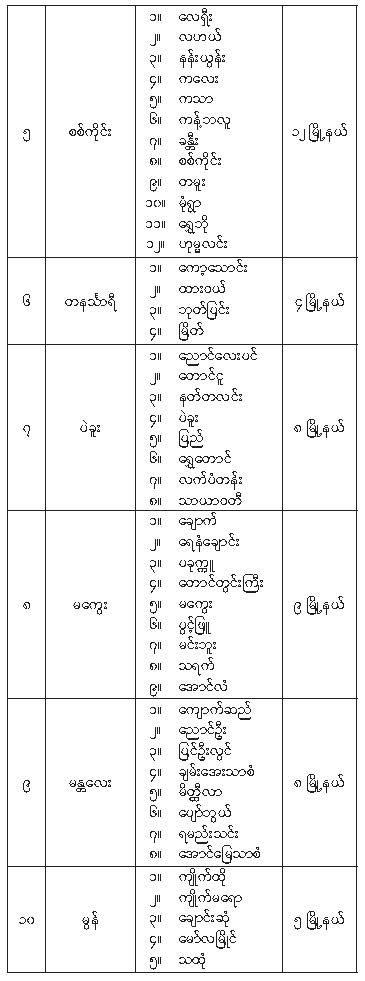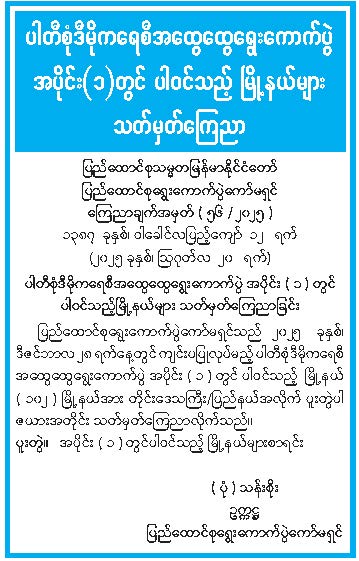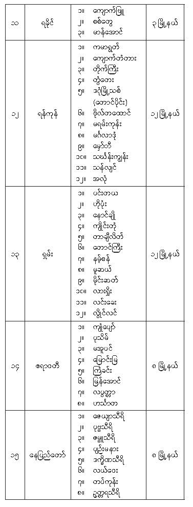 ပါတီစုံဒီမိုကရေစီအထွေထွေရွေးကောက်ပွဲ အပိုင်း (၁) တွင် ပါဝင်သည့် မြို့နယ်များ သတ်မှတ်ကြေညာခြင်း 08/21/2025