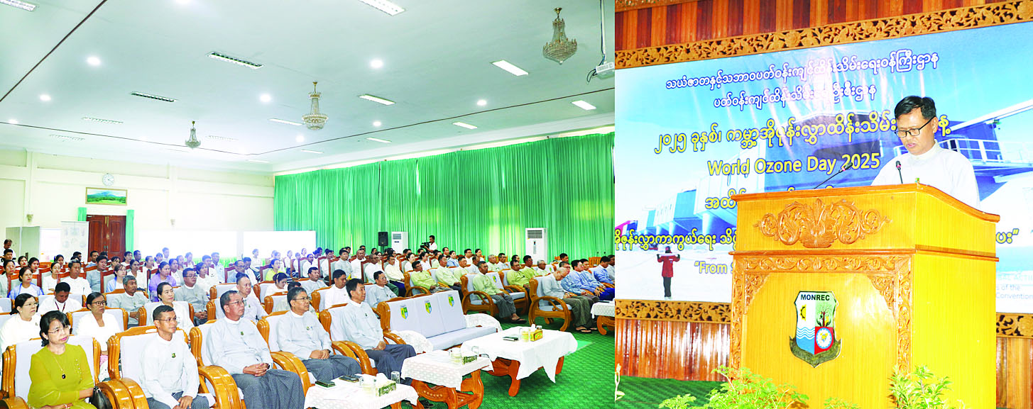 ၂၀၂၅ ခုနှစ် စက်တင်ဘာ ၁၆ ရက်တွင် ကျရောက်သည့် ကမ္ဘာ့အိုဇုန်းလွှာထိန်းသိမ်းရေးနေ့ (World Ozone Day) အထိမ်းအမှတ်အခမ်းအနားကို ယနေ့ မွန်းလွဲ ၁ နာရီတွင် နေပြည်တော် ရုံးအမှတ် (၃၉) သစ်တောဦးစီးဌာန အင်ကြင်းခန်းမ၌ ကျင်းပရာ သယံဇာတနှင့်သဘာဝပတ်ဝန်းကျင်ထိန်းသိမ်းရေးဝန်ကြီးဌာန ဒုတိယဝန်ကြီး ဦးမင်းသူ၊ အမြဲတမ်းအတွင်းဝန်၊ တာဝန်ရှိသူများ၊ မြန်မာနိုင်ငံအိုဇုန်းယူနစ်အဖွဲ့ဝင် ကိုယ်စားလှယ်များနှင့် လေအေးပေးစက်ဆိုင်ရာ ပညာရှင်အသင်းများမှ ကိုယ်စားလှယ်များ တက်ရောက်ကြသည်။