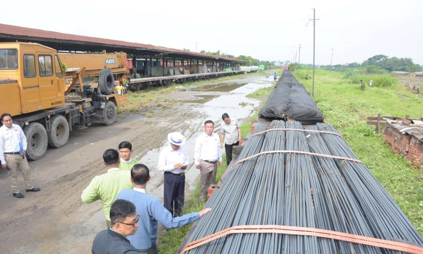ငလျင်ဘေးဒဏ်ခံခဲ့ရသော ဒေသများရှိ ပြန်လည်ထူထောင်ရေးနှင့် တည်ဆောက်ရေးလုပ်ငန်းများအတွက် လိုအပ်လျက်ရှိသော HRB 500 အမျိုးအစား သံချောင်းလုံးများအား ရန်ကုန်မြို့မှ မန္တလေးမြို့သို့ အထူးကုန်ရထားဖြင့် ပို့ဆောင်ရောက်ရှိလာခဲ့ကြောင်း သိရှိရသည်။