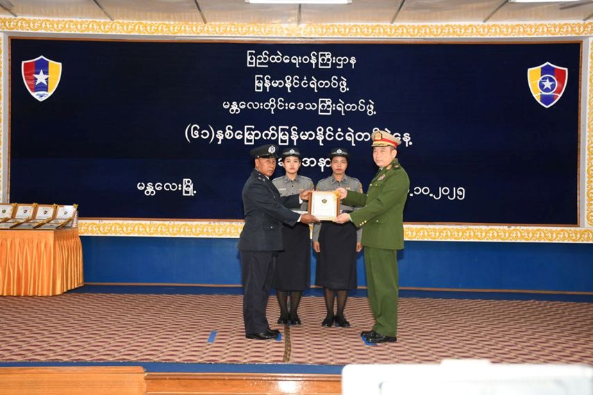 ၂၀၂၅ ခုနှစ်(၆၁)မြောက် မြန်မာနိုင်ငံရဲတပ်ဖွဲ့နေ့ အခမ်းအနားများကို ယနေ့နံနက်ပိုင်းတွင် ကချင်ပြည်နယ်၊ မြစ်ကြီးနားမြို့ရှိ အားကစားနှင့်ကာယပညာဦးစီးဌာန အားကစားခန်းမ၌လည်းကောင်း၊ ရှမ်းပြည်နယ်(တောင်ပိုင်း)၊ တောင်ကြီးမြို့၊ မြို့တော်ခန်းမ၌လည်းကောင်း၊ ရှမ်းပြည်နယ်(အရှေ့ပိုင်း)၊ ကျိုင်းတုံမြို့ မြို့တော်ခန်းမ၌လည်းကောင်း၊ တနင်္သာရီတိုင်းဒေသကြီး၊ မြိတ်မြို့ရှိ ပုလဲရတနာခန်းမ၌လည်းကောင်း၊ ဧရာဝတီတိုင်းဒေသကြီး၊ ပုသိမ်မြို့၊ မြို့တော်ခန်းမ၌လည်းကောင်း၊ မန္တလေးတိုင်းဒေသကြီး၊ ချမ်းအေးသာစံမြို့နယ်၌လည်းကောင်း အသီးသီးကျင်းပပြုလုပ်ကြရာ သက်ဆိုင်ရာတိုင်းဒေသကြီးနှင့် ပြည်နယ်ဝန်ကြီးချုပ်များ၊ တိုင်းစစ်ဌာနချုပ်အသီးသီးမှ တိုင်းမှူးများနှင့်အဖွဲ့ဝင်များ၊ မြန်မာနိုင်ငံရဲတပ်ဖွဲ့ဝင်များ၊ ဌာနဆိုင်ရာတာဝန်ရှိသူများနှင့် ဖိတ်ကြားထားသူများ တက်ရောက်ကြသည်။