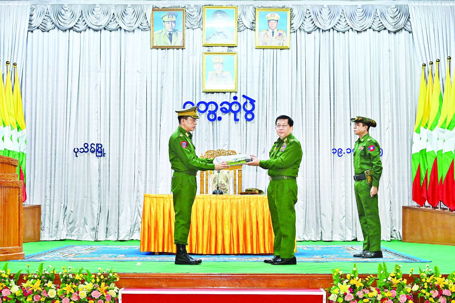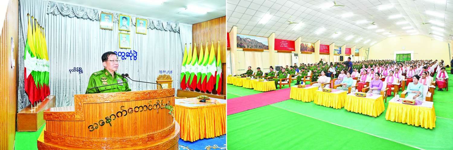 နိုင်ငံတော်လုံခြုံရေးနှင့် အေးချမ်းသာယာရေးကော်မရှင်ဥက္ကဋ္ဌ တပ်မတော်ကာကွယ်ရေးဦးစီးချုပ် ဗိုလ်ချုပ်မှူးကြီး မင်းအောင်လှိုင်သည် ပုသိမ်တပ်နယ်မှ အရာရှိ၊ စစ်သည်မိသားစုများအား ယနေ့နံနက်ပိုင်းတွင် အနောက်တောင်တိုင်းစစ်ဌာနချုပ်၊ ဧရာဝတီခန်းမ၌ တွေ့ဆုံအမှာစကား ပြောကြားသည်။