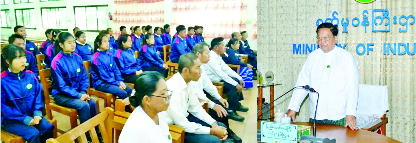 ဦးစွာ ပြည်ထောင်စုဝန်ကြီးက အမှတ်(၂)သံမဏိ စက်ရုံ(ပင်းပက်)၌ တာဝန်ထမ်းဆောင်နေသော ဝန်ထမ်းများ စွမ်းဆောင်ရည်မြှင့်တင်ရေးအတွက် “သံရည်ကျိုနည်းပညာမွမ်းမံသင်တန်း” ဖွင့်လှစ်ရခြင်းဖြစ်ကြောင်း၊ စက်ရုံစက်စွမ်းအားပြည့်လည်ပတ်နိုင်ရန် စက်ပိုင်းဆိုင်ရာ ပြင်ဆင်မှုများအပြင် လူ့စွမ်းအားအရင်းအမြစ်များကို အချိန်နှင့်တစ်ပြေးညီ လေ့ကျင့်တည်ဆောက်ရမည်ဖြစ်ကြောင်း၊ သံရည်ကျိုခြင်းဆိုင်ရာ ဘေးအန္တရာယ်ကင်းရှင်းရေးစံနှုန်းများ၊ ထုတ်လုပ်မှုစွမ်းရည်မြှင့်တင် ရေးနည်းလမ်းများနှင့် အရည်အသွေးထိန်းချုပ်ရေးနည်းစနစ်တို့ကို စိတ်ပါဝင်စားစွာ လေ့လာသင်ယူကြရန် တိုက်တွန်းပါကြောင်း၊ သင်တန်းမှရရှိလာသည့် နည်းပညာများကို မိမိတို့၏စက်ရုံ၊ လုပ်ငန်းခွင်တွင် လက်တွေ့ကျကျ ထိရောက်စွာအသုံးချခြင်းဖြင့် စက်ရုံ၏စွမ်းဆောင်ရည်ကို မြှင့်တင်ကြရမည်ဖြစ်ကြောင်း၊ ဝန်ထမ်းတစ်ဦးချင်းစီ၏ တိုးတက်မှုသည် စက်ရုံ၏တိုးတက်မှုဖြစ်သလို ဝန်ကြီးဌာနနှင့် နိုင်ငံတော်အတွက် အကျိုးရှိမည်ဖြစ်ကြောင်း မှာကြားသည်။
