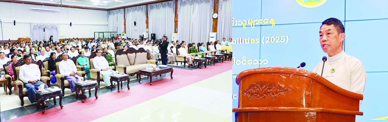 ၂၀၂၅ ခုနှစ် အပြည်ပြည်ဆိုင်ရာ မသန်စွမ်းသူများနေ့အထိမ်းအမှတ်အခမ်းအနားကို ယနေ့နံနက်ပိုင်းတွင် နေပြည်တော်ရှိ လူမှုဝန်ထမ်း၊ ကယ်ဆယ်ရေးနှင့် ပြန်လည်နေရာချထားရေးဝန်ကြီးဌာန စုပေါင်းအစည်းအဝေးခန်းမ၌ ကျင်းပသည်။