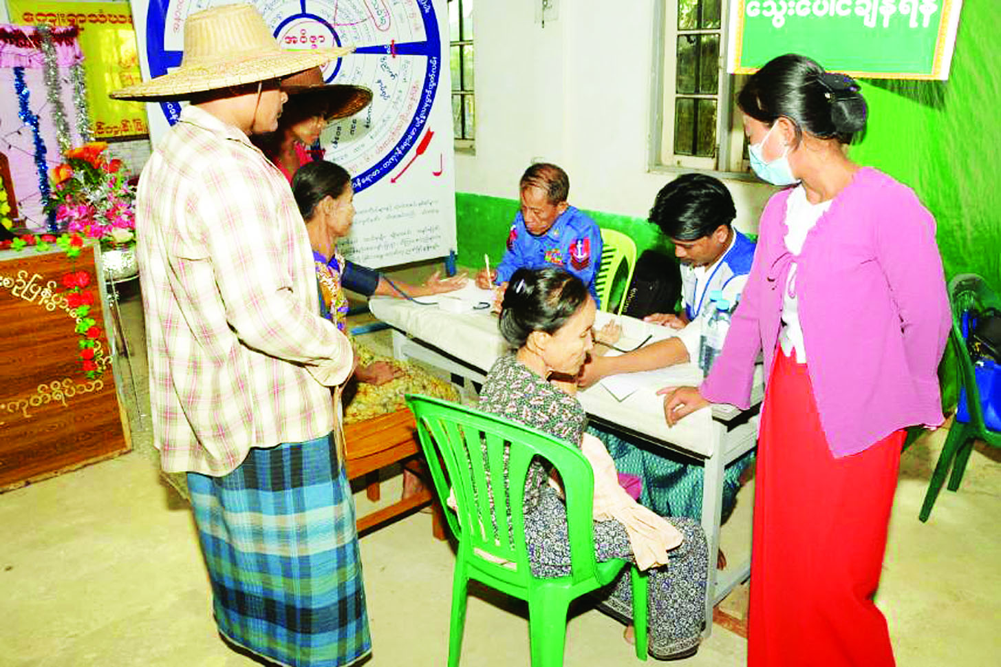 ထိုသို့ ဆောင်ရွက်ပေးရာ ဆေးကုသမှုဆိုင်ရာရောဂါ ၁၂၄ ဦး၊ ခွဲစိတ်ရောဂါ ၂၁ ဦး၊ သားဖွား/မီးယပ်ရောဂါ ၃၁ ဦး၊ ကလေးရောဂါ ၃၂ ဦး၊ အရိုးရောဂါ ၄၈ ဦး၊ နား၊ နှာခေါင်း၊ လည်ချောင်းရောဂါ ၂၉ ဦး၊ မျက်စိရောဂါ ၄၅ ဦးနှင့် သွားနှင့်ခံတွင်းရောဂါ ၃၁ ဦး၊ စုစုပေါင်းဒေသခံပြည်သူ ၃၆၁ ဦးတို့ကို လိုအပ်သည့် ဆေးဝါးကုသမှုများ ဆောင်ရွက်ပေးသည်။ ၎င်းတို့အနက် အထွေထွေခွဲစိတ် လူနာ တစ်ဦး၊ သွားနုတ်/သွားဖာ ၁၆ ဦး၊ ဓာတ်မှန်ရိုက်လူနာ ၁၂ ဦး၊ အာထရာဆောင်းစက်ဖြင့် စမ်းသပ်စစ်ဆေးလူနာ ၂၂ ဦး၊ ECG စက် ဖြင့် နှလုံးစမ်းသပ်လူနာ ၁၂ ဦးနှင့် ဓာတ်ခွဲစမ်းသပ်လူနာ ၃၆ ဦးတို့ကို ရောဂါရှာဖွေစမ်းသပ်ကုသပေးခြင်းများ ဆောင်ရွက်ပေးကြသည်။