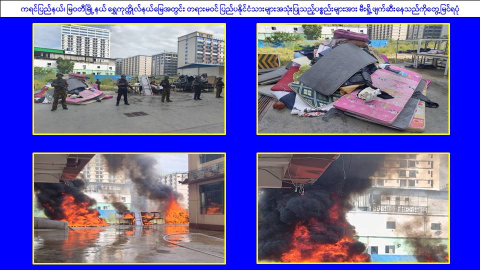 ၎င်းအပြင် မြဝတီမြို့နယ်အတွင်းရှိ KK Park နယ်မြေနှင့် ရွှေကုက္ကိုလ်နယ်မြေတို့၌ အွန်လိုင်းလိမ်လည်လောင်းကစားမှုကျူးလွန်ရာတွင် အသုံးပြုသည့်ပစ္စည်းများအား ထပ်မံ၍ အသုံးပြုနိုင်ခြင်းမရှိစေရန်အတွက် ယနေ့တွင်လည်း စနစ်တကျမီးရှို့ဖျက်ဆီးခဲ့ကြောင်း သိရှိရသည်။