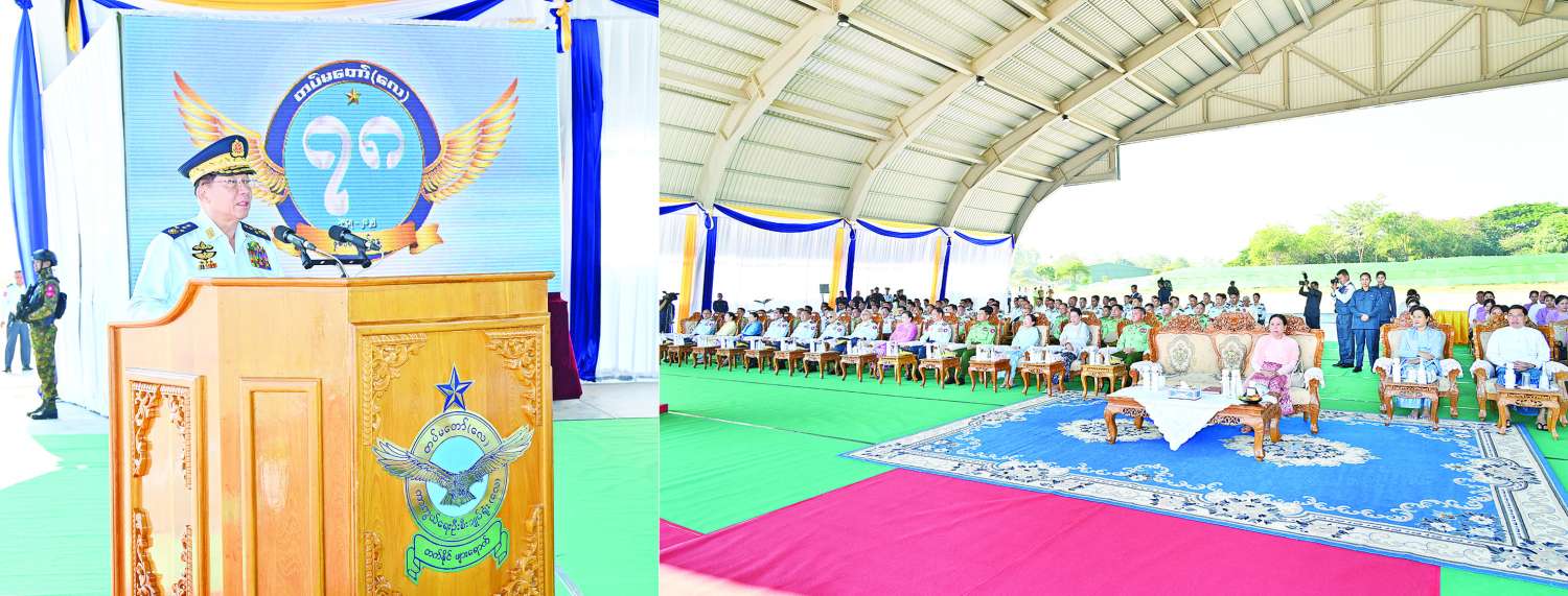 နိုင်ငံတစ်နိုင်ငံ၏ အချုပ်အခြာအာဏာတည်တံ့ခိုင်မြဲရေး၊ နိုင်ငံဖွံ့ဖြိုးတိုးတက်ရေး၊ ပြည်သူလူထု၏ အသက်အိုးအိမ်စည်းစိမ်ကို အကာအကွယ်ပေးရေးနှင့် အမျိုးသားအကျိုးစီးပွားကို ထိန်းသိမ်းကာကွယ်စောင့်ရှောက်ရေးတို့အတွက် တည်ဆောက်ကြိုးပမ်းရာတွင် ခိုင်မာတောင့်တင်းသည့် ကာကွယ်ရေးစွမ်းအားစုတစ်ရပ် ပိုင်ဆိုင်ထားရန် မဖြစ်မနေလိုအပ်သည်မှာ အထင်အရှားပင်ဖြစ်ကြောင်း၊ တပ်မတော်သည် လွတ်လပ်ရေးနှင့်အတူ ပြည်သူကြားက ပေါက်ဖွားလာသည့် မျိုးချစ်ပြည်သူ့တပ်မတော်ဖြစ်ပြီး တိုင်းရင်းသားပေါင်းစုံပါဝင်သည့် ပြည်ထောင်စုတပ်မတော်လည်းဖြစ်ကြောင်း၊ ခေတ်အဆက်ဆက်နိုင်ငံတော်အပေါ် ကျရောက်လာသည့် ပြည်တွင်းပြည်ပအန္တရာယ်အမျိုးမျိုးကို ပြည်သူများနှင့် လက်တွဲပြီး အသက်သွေးချွေးများစွာ ပေးဆပ်ကာကွယ်စောင့်ရှောက်ခဲ့သည်မှာ အားလုံးအသိပင်ဖြစ်ကြောင်း၊ အရေးကြုံလာတိုင်း ပြည်သူ့ရှေ့က မားမားမတ်မတ်ရပ်တည်ပေးခဲ့သည်မှာ တပ်မတော်ပင်ဖြစ်ကြောင်း၊ ထို့ကြောင့် အစဉ်ပြောင်းလဲဖြစ်ပေါ်တိုးတက်နေသည့် ခြိမ်းခြောက်စိန်ခေါ်မှု အမျိုးမျိုးကို အပြည့်အဝရင်ဆိုင်တုံ့ပြန်နိုင်အောင် တပ်မတော် (ကြည်း/ ရေ/ လေ) ဟူသည့် ကာကွယ်ရေးစွမ်းအားစုကြီးကို ခိုင်မာတောင့်တင်းပြီး စွမ်းရည်မြင့်မားထက်မြက်စွာ တည်ဆောက်ထားရန် အထူးလိုအပ်ကြောင်း၊ သို့မှသာ အမိနိုင်ငံတော်၏ အချုပ်အခြာအာဏာနှင့် နယ်မြေပိုင်ဆိုင်မှုကို ကာကွယ်စောင့်ရှောက်ပေးနိုင်မည်ဖြစ်ကြောင်း။ အာမခံချက်အပြည့်အဝဖြင့် တပ်မတော် (လေ) ကိုလည်း ခေတ်အဆက်ဆက်ကြုံတွေ့ခဲ့ရသည့် အတွေ့အကြုံများအပေါ် သင်ခန်းစာဖော်ထုတ်ကာ ခေတ်မီပြီး စွမ်းရည်ထက်မြက်အင်အားတောင့်တင်းခိုင်မာသည့် လေတပ်တစ်ခုအဖြစ် အဆင့်ဆင့်တည်ဆောက်ပေးလျက်ရှိကြောင်း၊ စတင်ဖွဲ့စည်းတည်ထောင်ချိန်က အခြေစိုက်စခန်း ၁ ခုနှင့် ပျံသန်းရေးအုပ်အနည်းငယ်သာရှိခဲ့ရာမှ ယခုဆိုပါက မြန်မာ့ဝေဟင်ပိုင်နက်တစ်ခုလုံးကို အလှမ်းမီစိုးမိုးနိုင်ရန် ဖြန့်ကျက်ချထားနိုင်ပြီဖြစ်ကြောင်း၊ စွမ်းဆောင်ရည်ပိုင်းတွင်လည်း သောင်းကျန်းမှုနှိမ်နင်းရေးလေတပ်အဆင့်မှ နည်းဗျူဟာမြောက်လေတပ်တစ်ခုအဖြစ် တိုးတက်တည်ဆောက်နိုင်ခဲ့ကြောင်း၊ လက်ရှိဆင်နွှဲနေသည့် အကြမ်းဖက်မှုတိုက်ဖျက်ရေးစစ်ဆင်မှုများတွင် တပ်မတော် (လေ) အနေဖြင့် နိုင်ငံအနှံ့ပျံသန်းစစ်ဆင်မှုများ ထိထိရောက်ရောက်ဆောင်ရွက်ကာ အထောက်အကူပြုနေသည်ကို တွေ့ရှိရမည်ဖြစ်ကြောင်း။